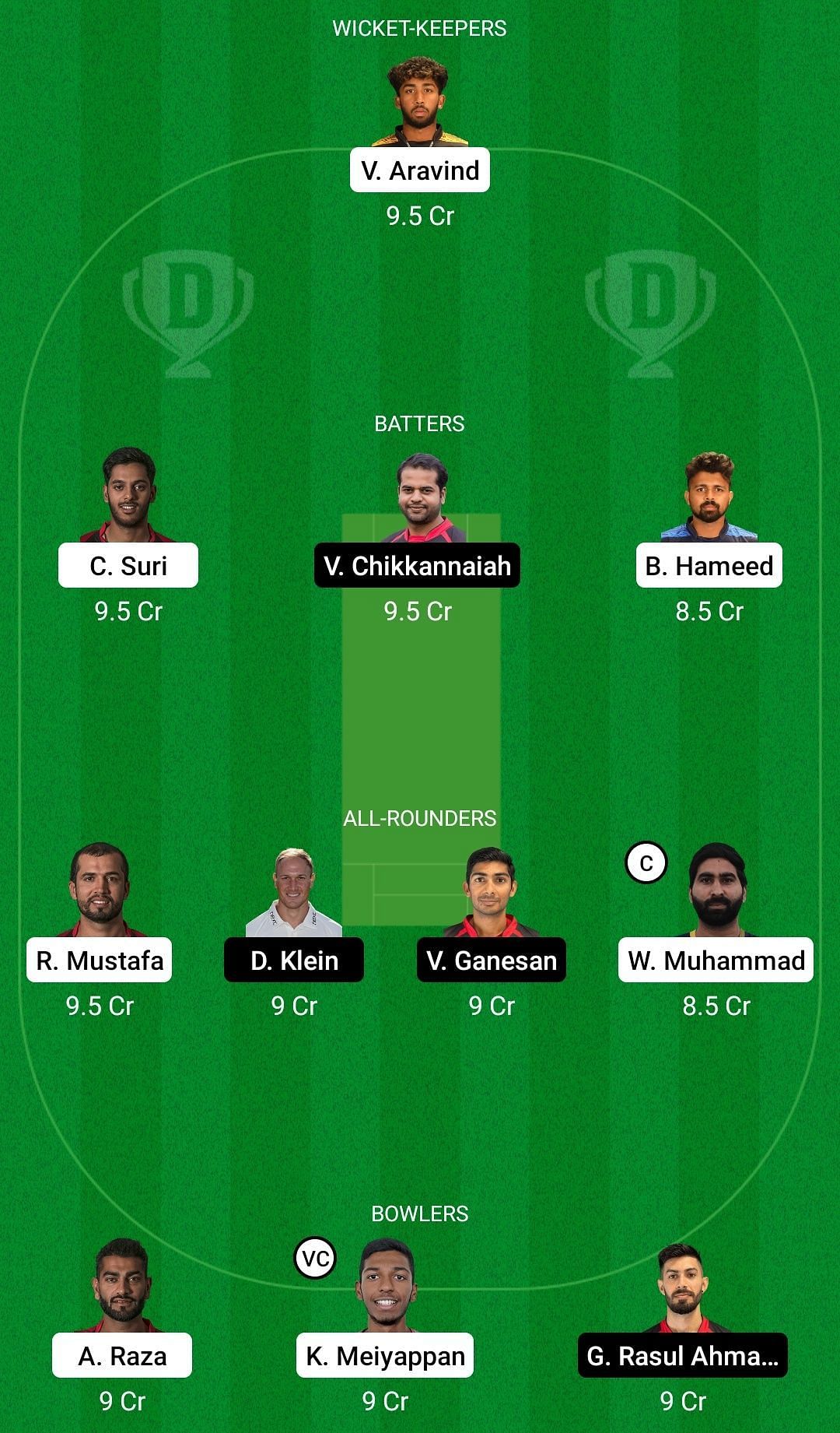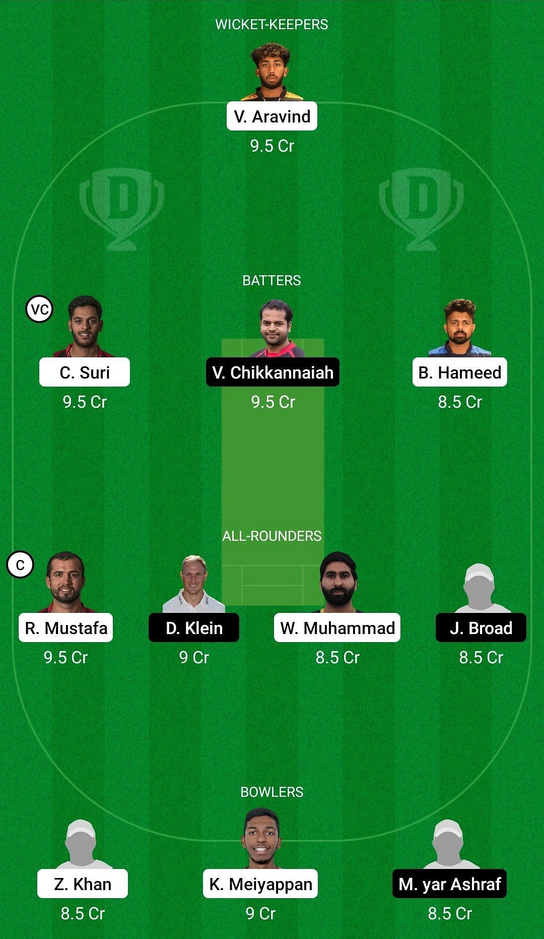 Fantasy Suggestion #1: Vriitya Aravind, Chirag Suri, Vijayshankar Chikkannaiah, Basil Hameed, Rohan Mustafa, Dieter Klein, Muhammad Waseem, Justin Broad, Zahoor Khan, Karthik Meiyappan, Muslim Yar