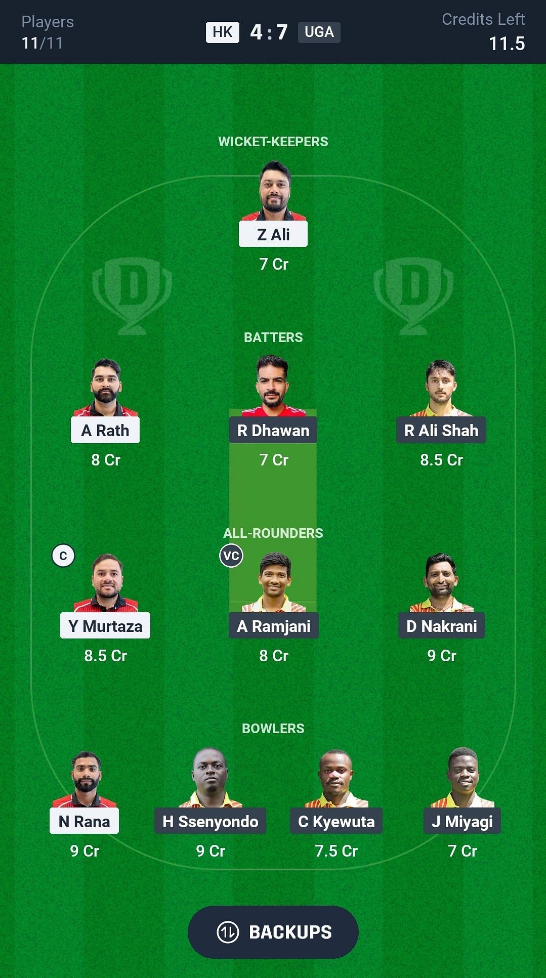 UGA vs HK match captain and vice-captain choices