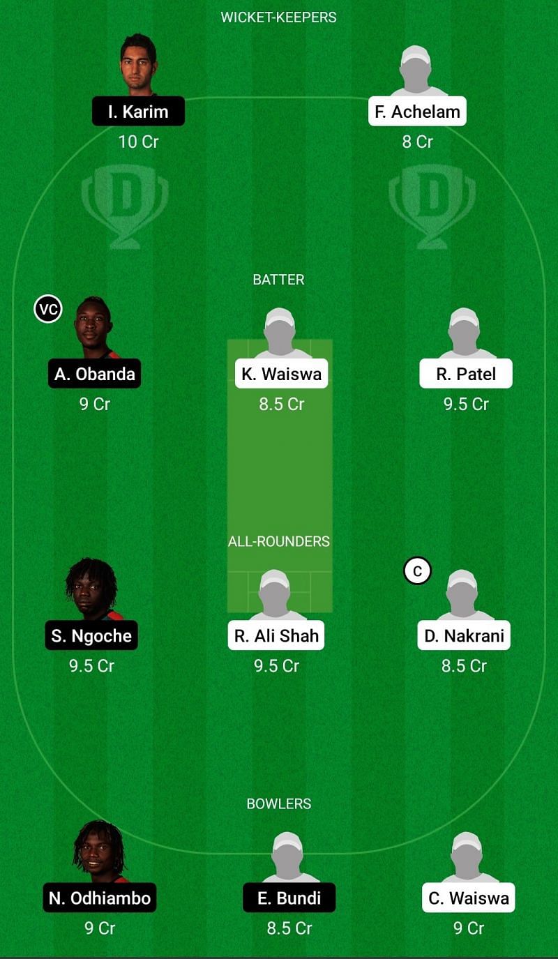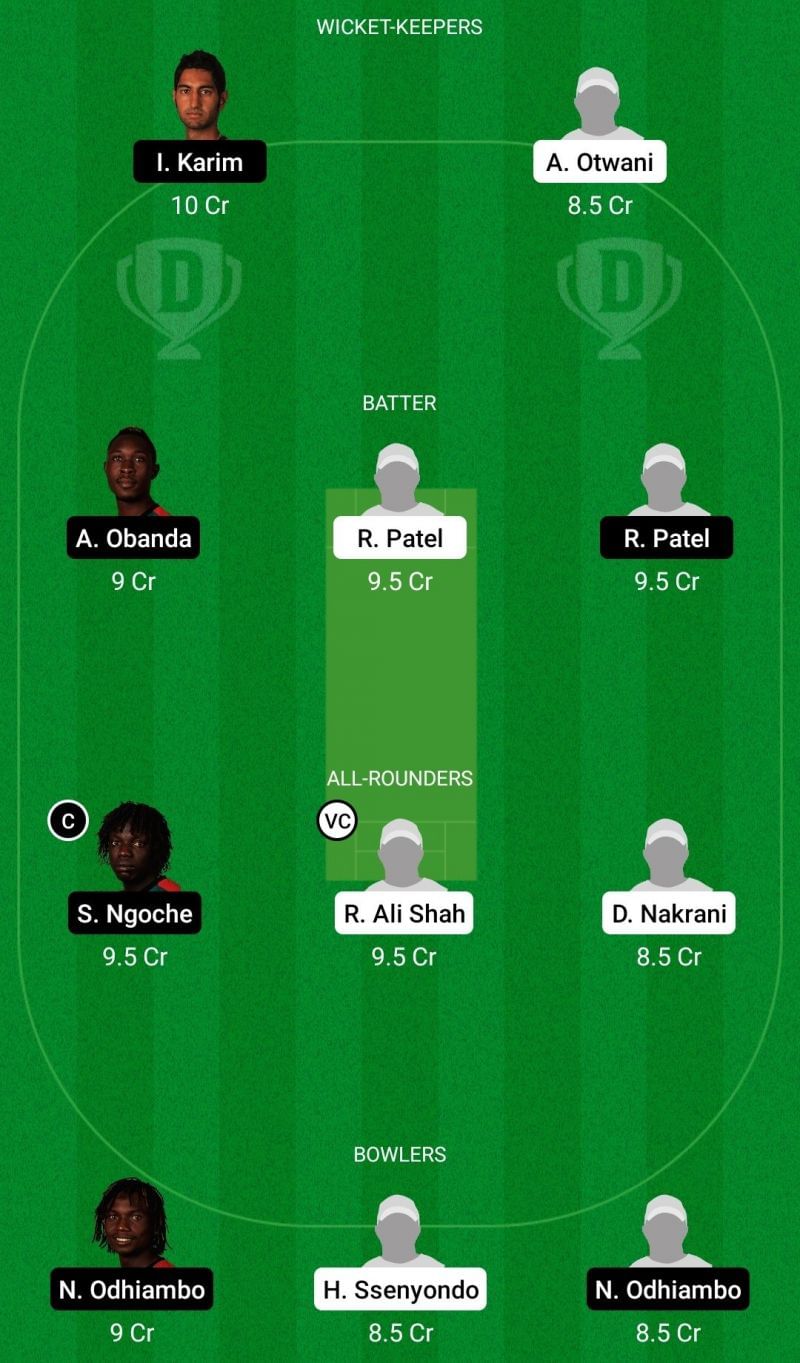 Fantasy Suggestion #1: Irfan Karim, Arnold Otwani, Alex Obanda, Ronak Patel, Rushab Patel, Shem Ngoche, Riazat Ali Shah, Dinesh Nakrani, Nelson Odhiambo, Henry Ssenyondo, Nehemiah Odhiambo