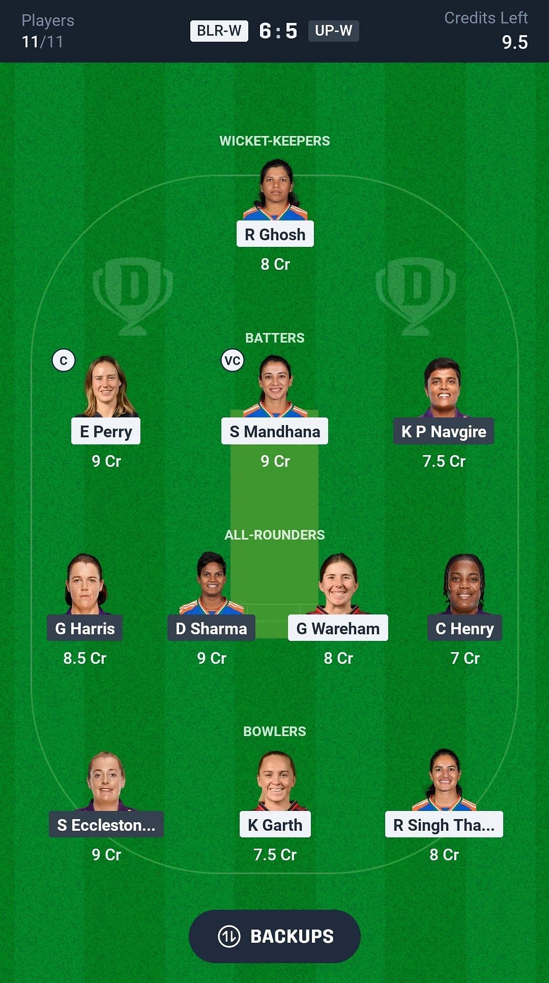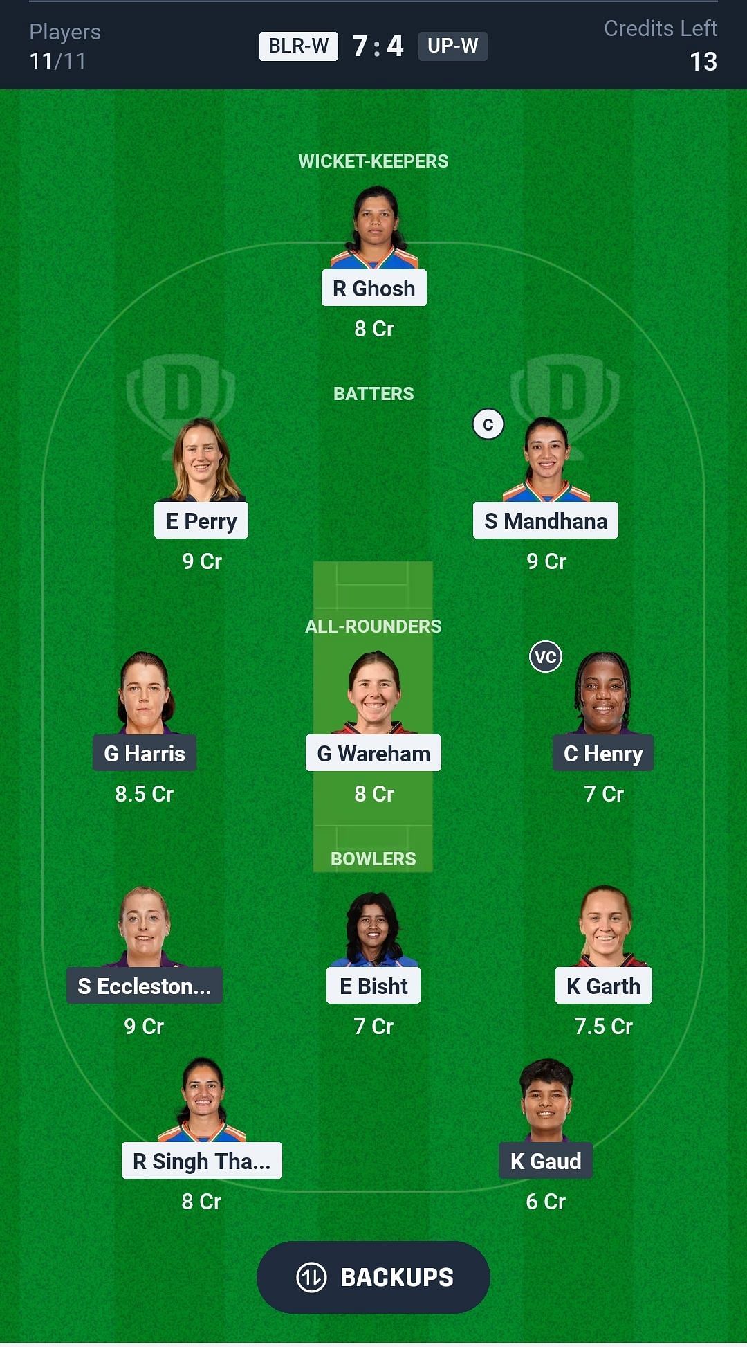 UP-W vs BLR-W match captain and vice-captain choices