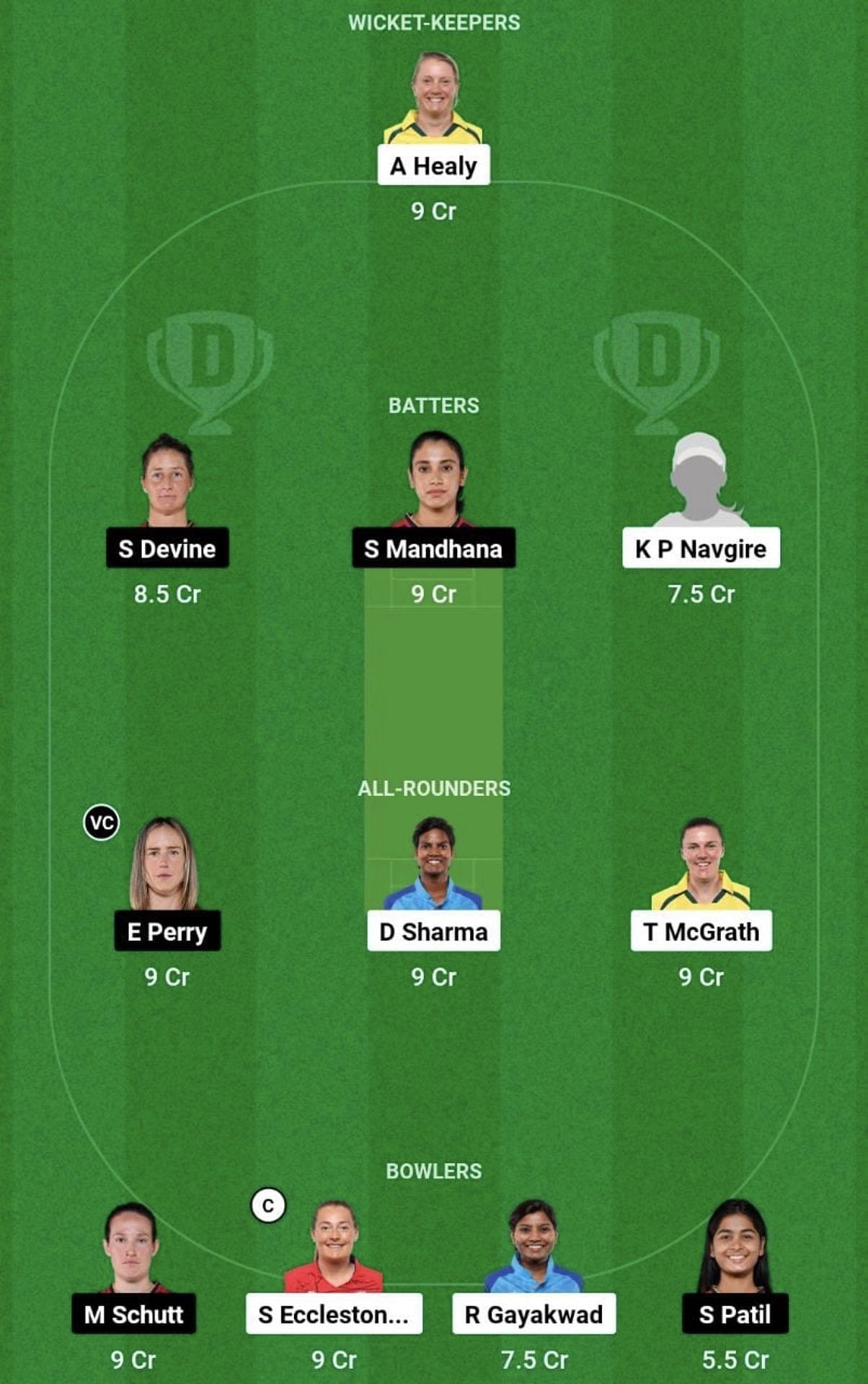 Smriti Mandhana (c), Sophie Devine, Ellyse Perry, Heather Knight, Richa Ghosh (wk), Disha Kasat, Renuka Singh Thakur, Megan Schutt, Asha Shobana, Preeti Bose and Shreyanka Patil.