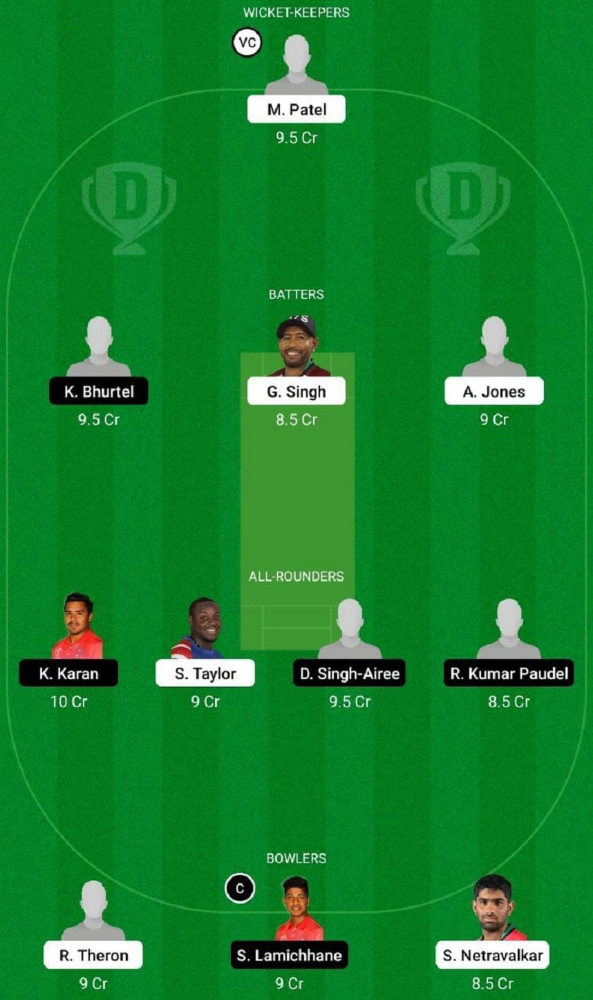 Fantasy Suggestion #2: M Patel, D Singh Airee, K Bhurtel, A Jones, G Singh, KC Karan, R Paudel, S Taylor, S Lamichhane, R Theron and S Netravalkar.