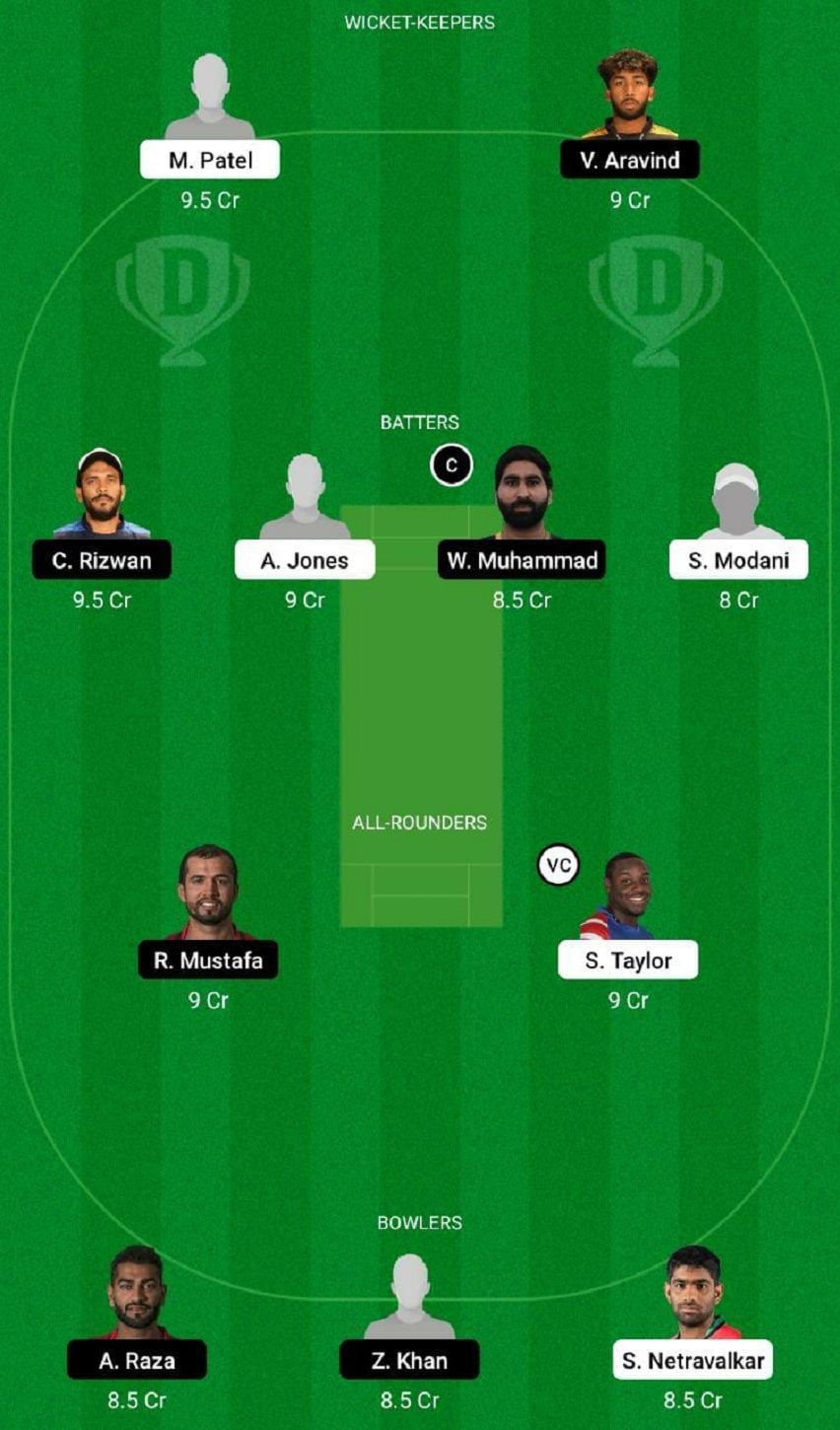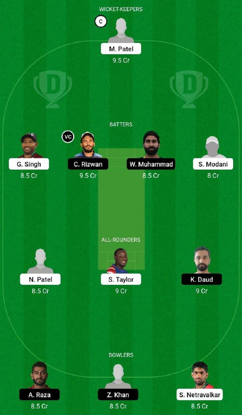 Fantasy Suggestion #1: Monank Patel, Vriitya Aravind, CP Rizwan, Aaron Jones, Waseem Muhammad, Sushant Modani, Steven Taylor, Rohan Mustafa, Ahmed Raza, Zahoor Khan and Saurabh Netravalkar.
