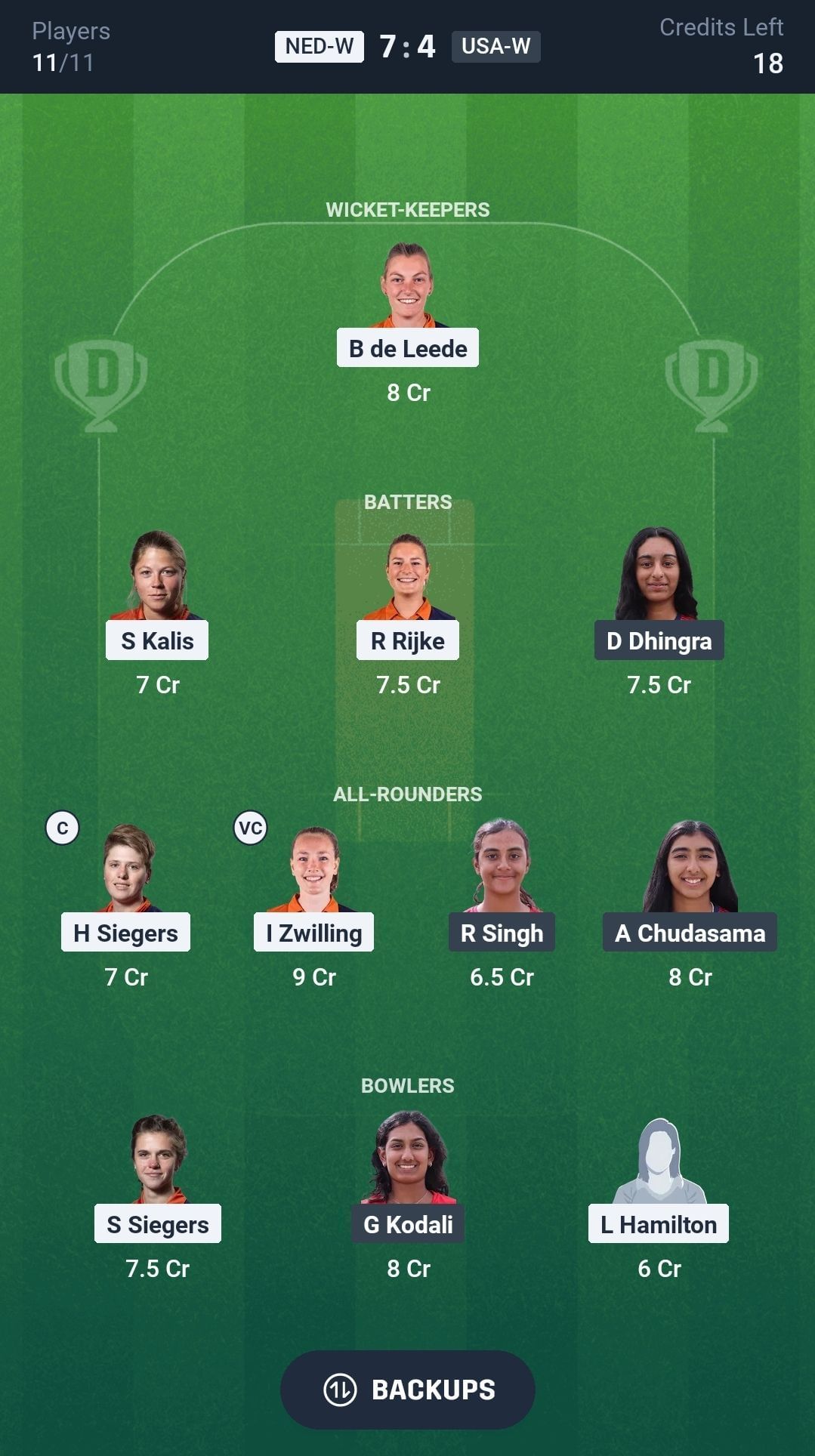 USA-W vs NED-W match captain and vice-captain choices