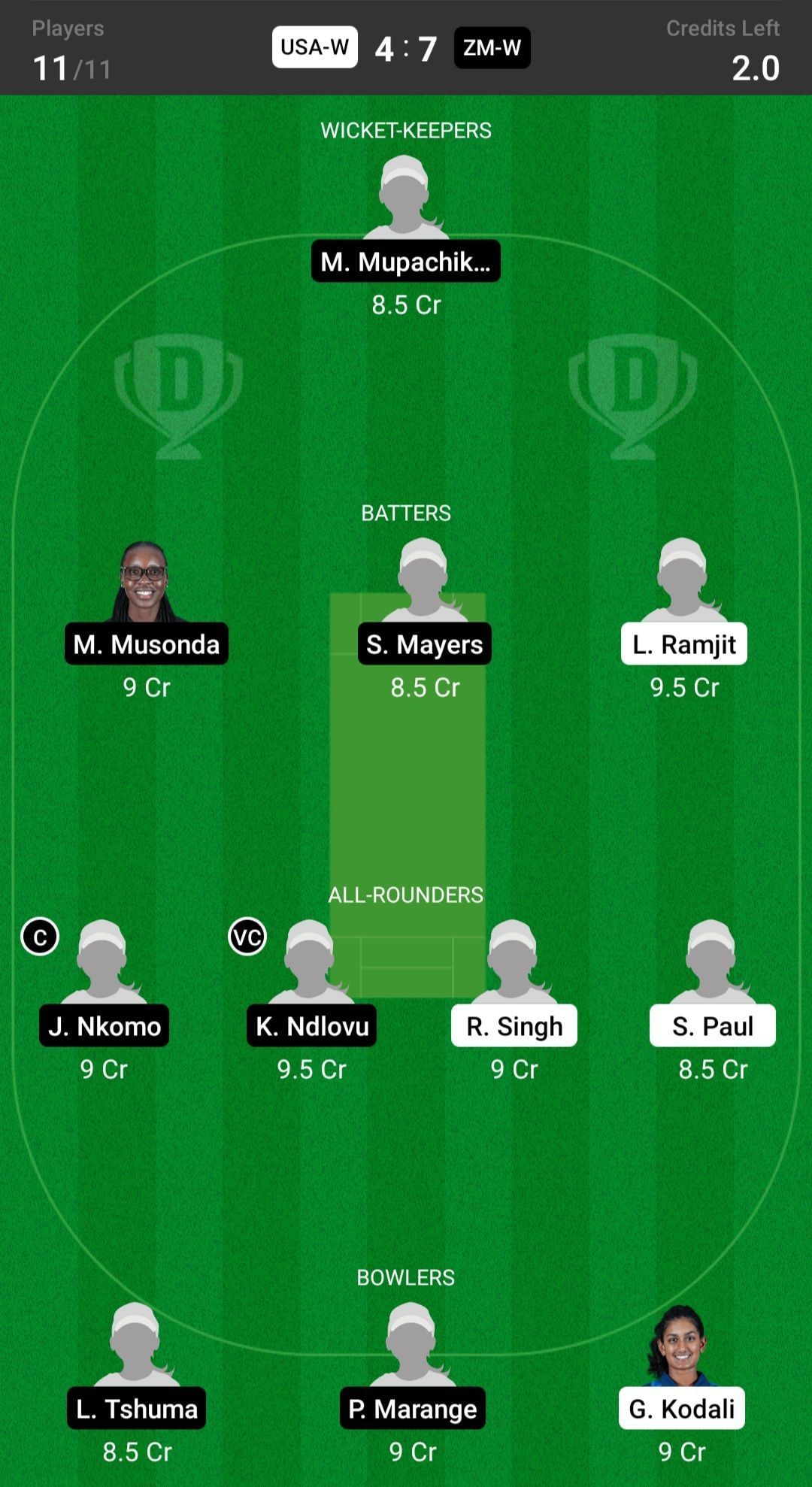 USA-W vs ZM-W match captain and vice-captain choices