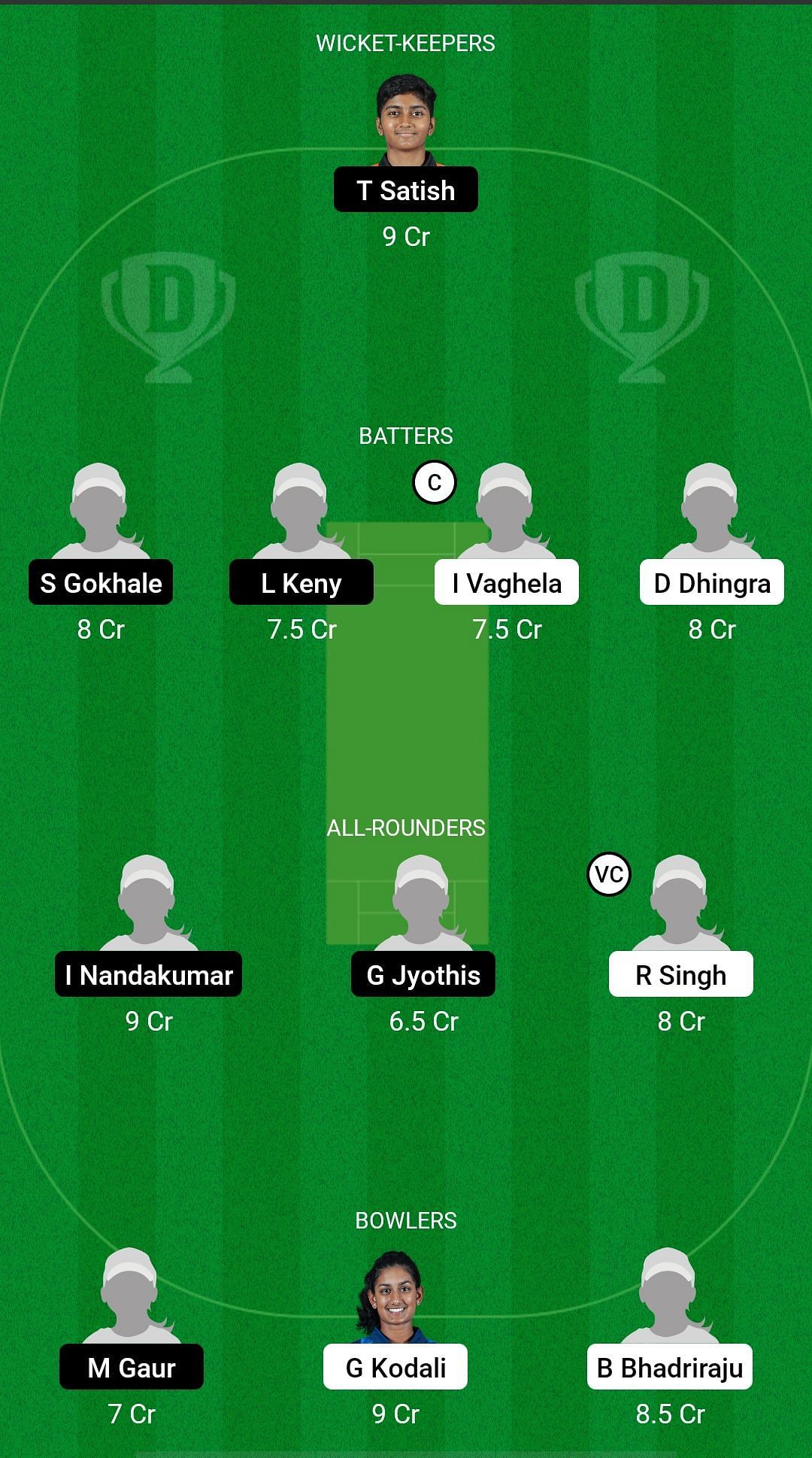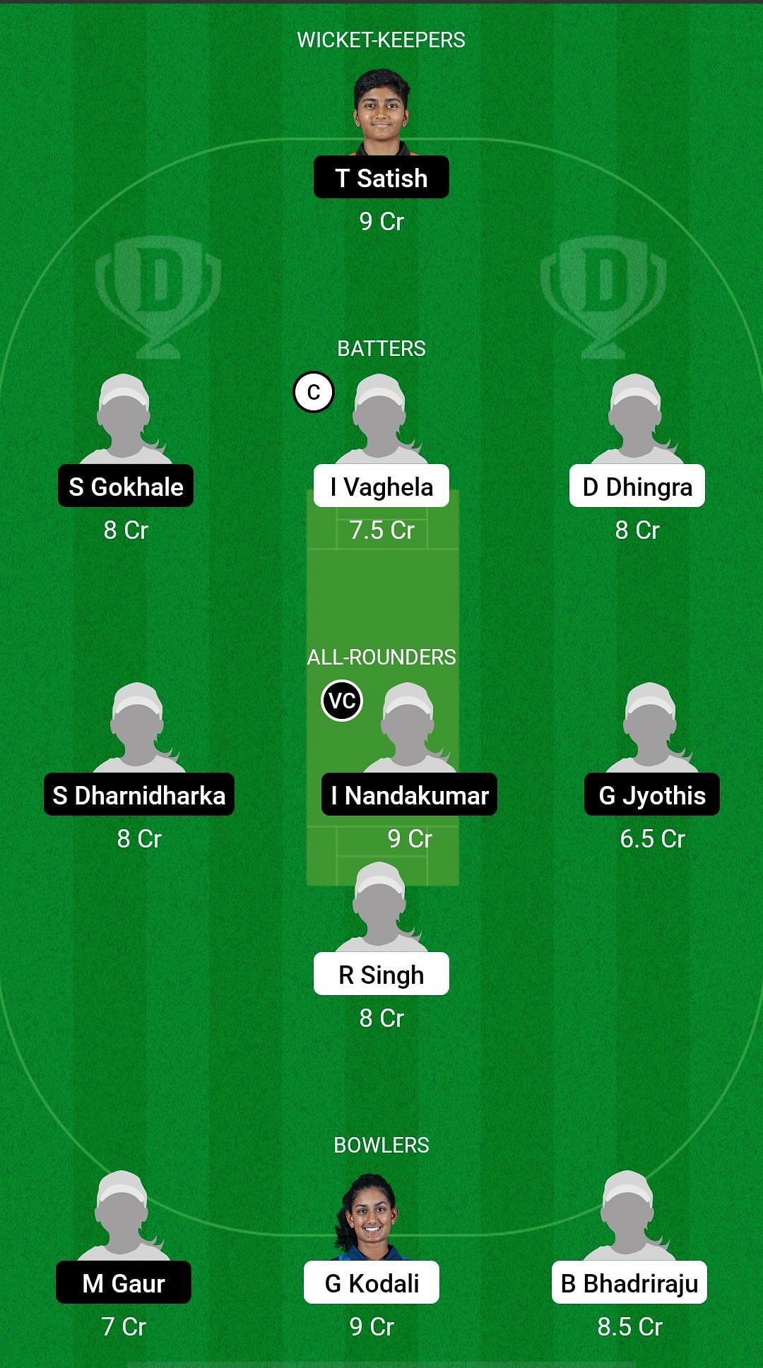 Isani Vaghela could prove to be a wise multiplier choice for your fantasy team considering her recent form. She can get you points with the bat and the ball, making her a valuable option for your Dream11 outfit.