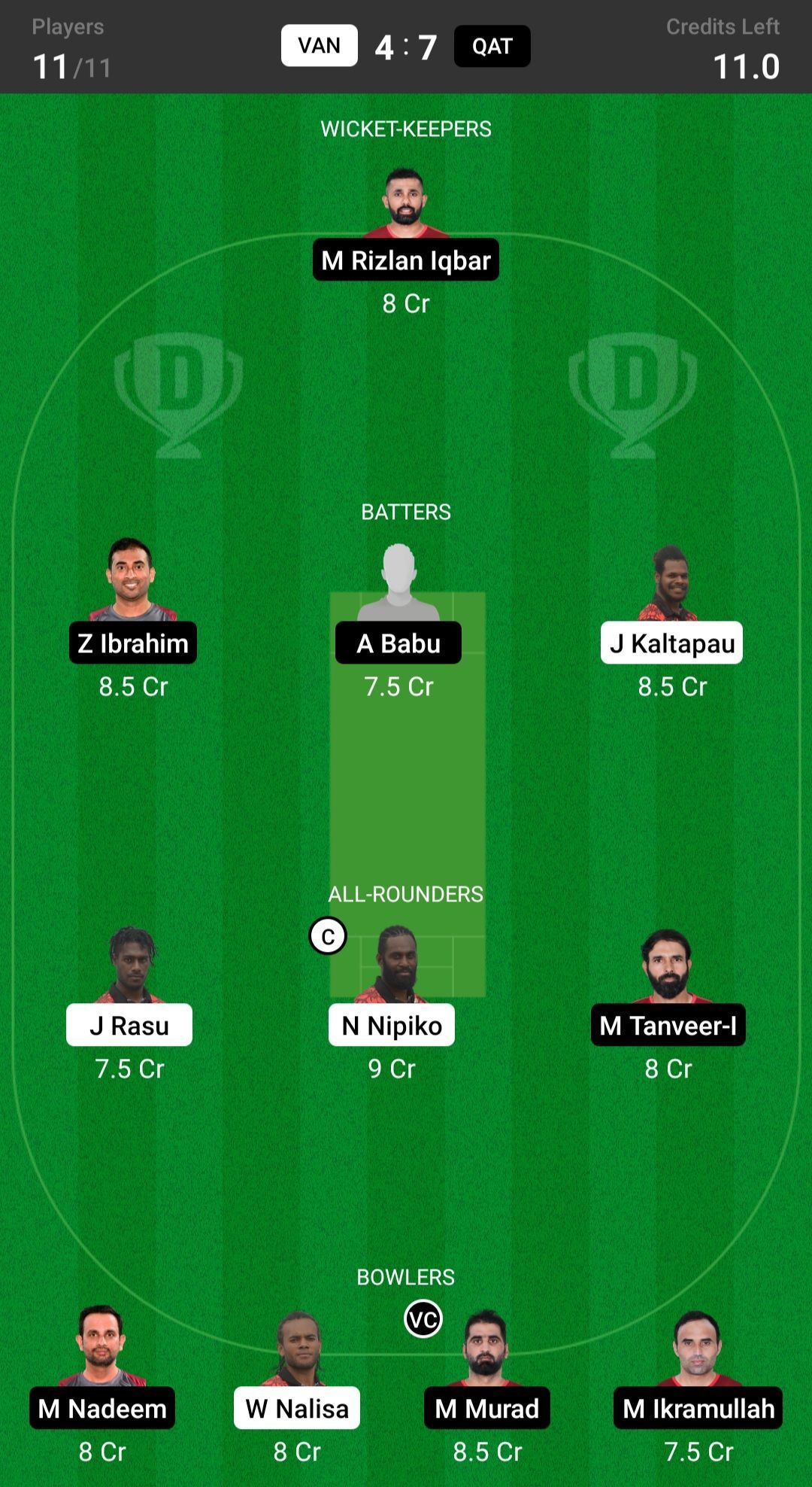 Vanuatu vs Qatar Dream11 Prediction, Grand League