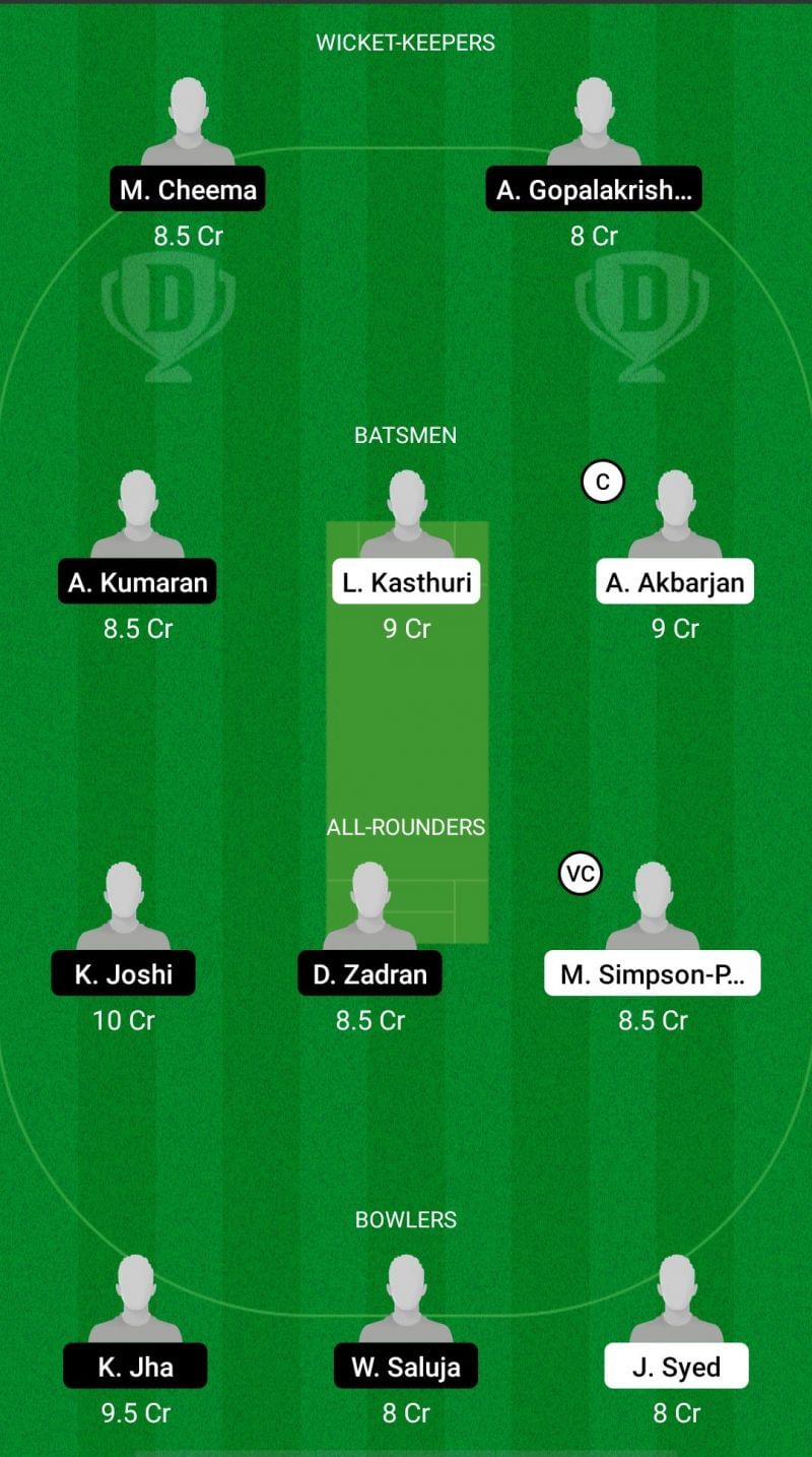 Captain: Abdullah Akbarjan. Vice-captain: Kunal Joshi.