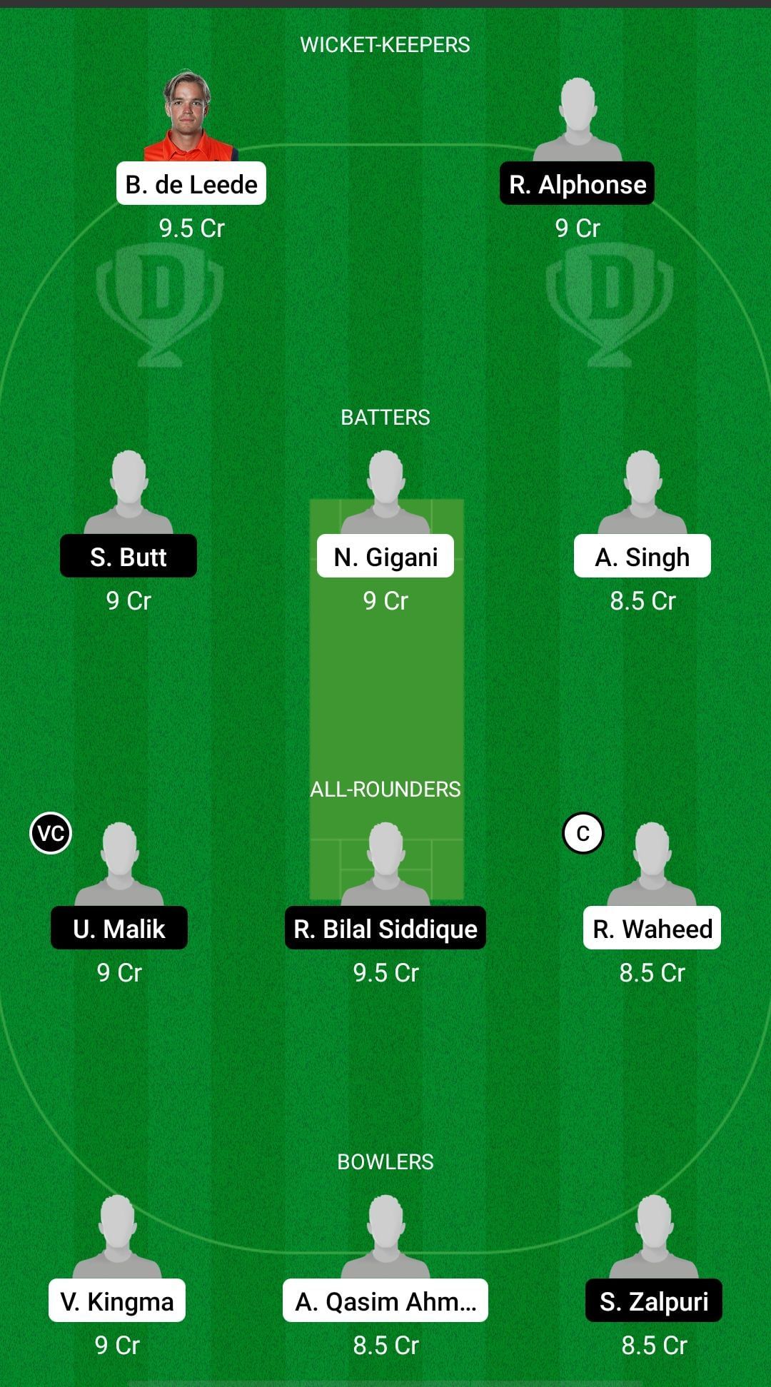 Fantasy Suggestion #1: Bas de Leede, Ratha Alphonse, Sherry Butt, Nehaan Gigani, Amrit Singh, Usman Malik, Bilal Siddique, Rehan Waheed, Vivian Kingma, Ali Qasim, Saurabh Zalpuri.