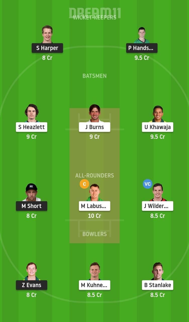 Fantasy Suggestion #1: Peter Handscomb, Sam Harper, Usman Khawaja, Joe Burns, Sam Heazlett, Marnus Labuschagne, Matthew Short, Jack Wildermuth, Billy Stanlake, Matthew Kuhnemann, Zak Evans.