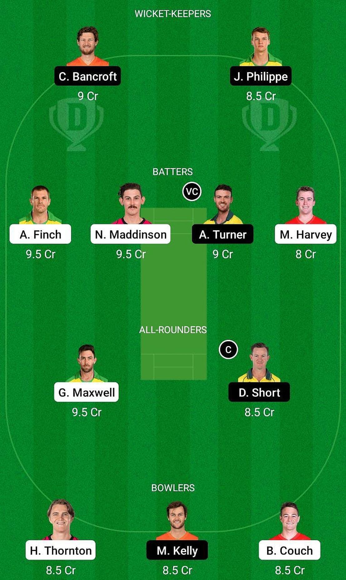 Fantasy Suggestion #2: Cameron Bancroft, Josh Philippe, Aaron Finch, Nic Maddinson, Aston Turner, Mackenzie Harvey, Glenn Maxwell, D'Arcy Short, Henry Thornton, Matthew Kelly, Brody Couch.