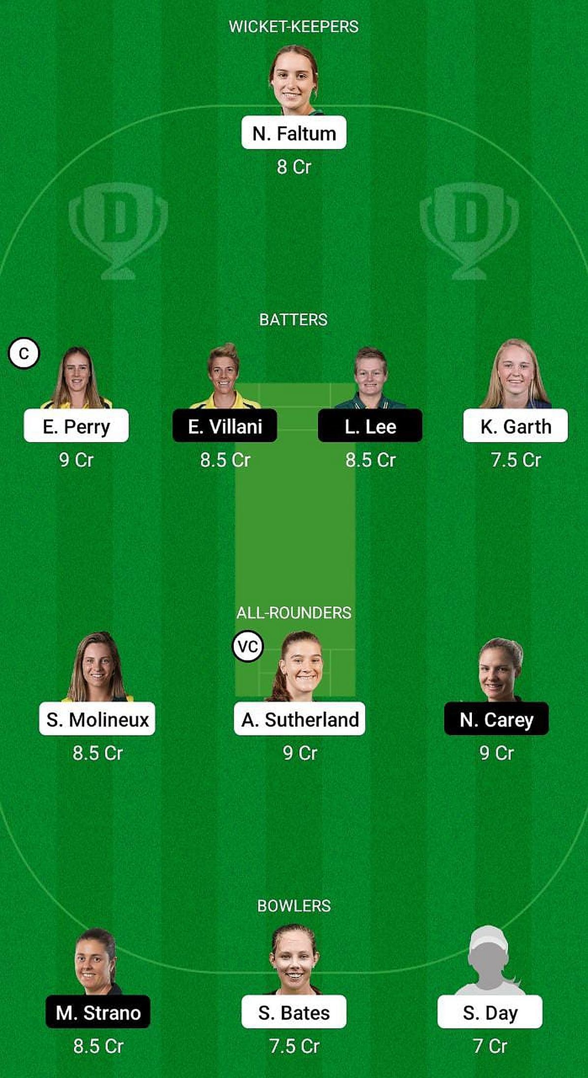 Sophie Molineux (c), Makinley Blows, Ellyse Perry, Annabel Sutherland, Nicole Faltum (wk), Kim Garth, Ella Hayward, Tess Flintoff, Rhiann O'Donnell, Sophie Day, Samantha Bates.
