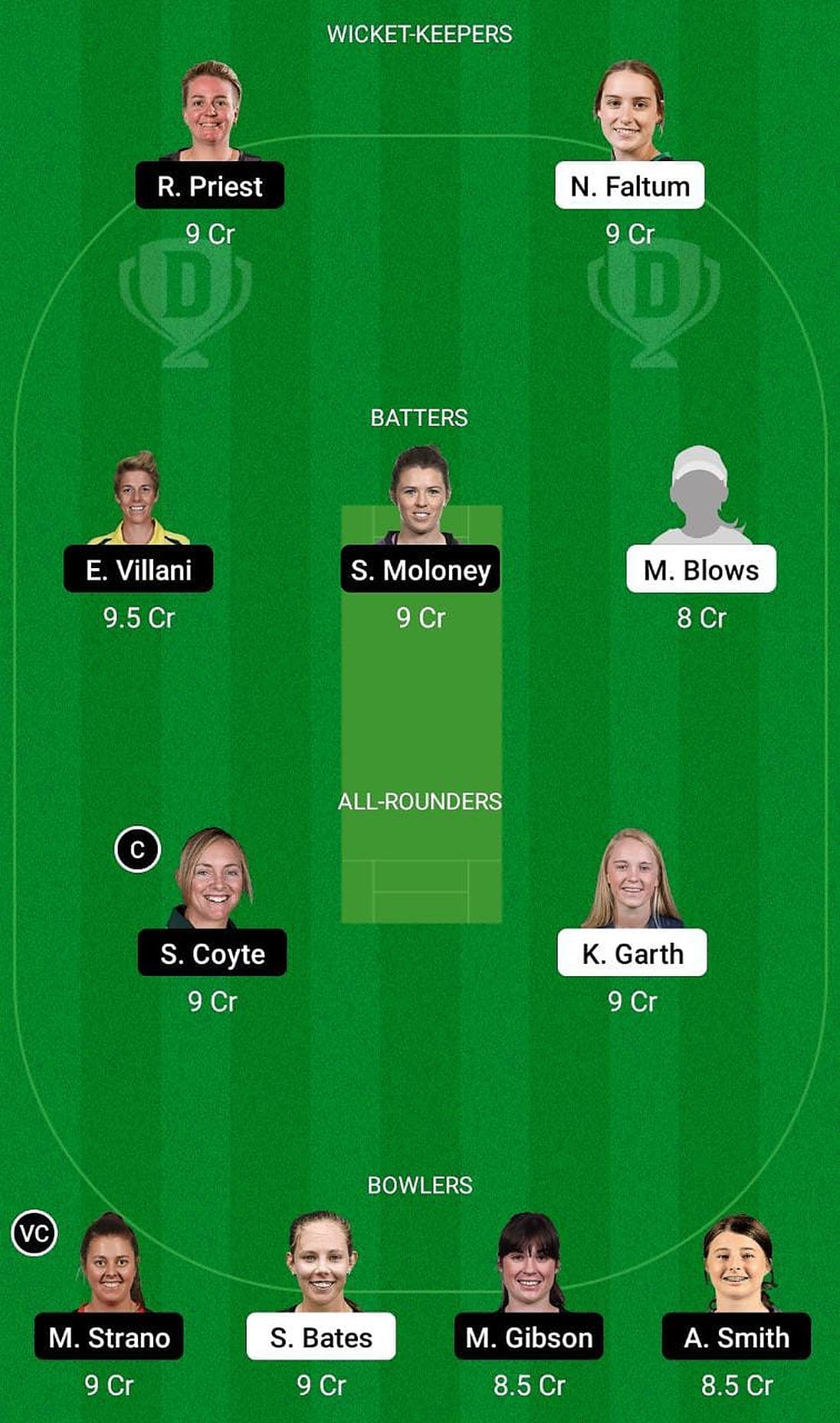 Sarah Coyte: Coyte is a fantastic all-rounder who has performed admirably in this competition. She has scored 69 runs and has taken twelve wickets in six matches. Coyte is an excellent cumulative choice for your VCT-W vs TAS-W Dream11 Fantasy Side.