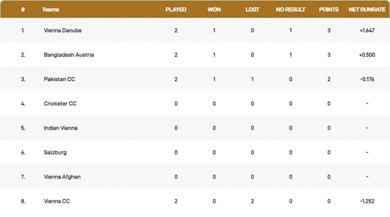 Cricketer CC, Indian Vienna, Salzburg, and Vienna Afghan are yet to begin their campaigns in the tournament. The three teams barring Salzburg will be seen in action on Tuesday.