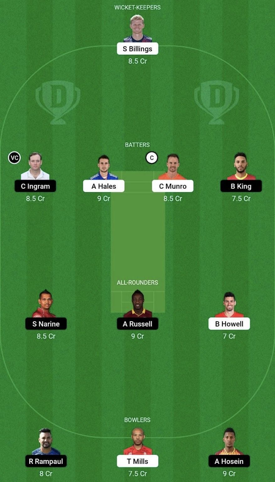 Charith Asalanka, Kennar Lewis (wk), Colin Ingram, Brandon King, Fahad Nawaz, Andre Russell, Akeal Hosein, Sunil Narine (c), Zawar Farid, Ali Khan, Ravi Rampaul and Matiullah Khan.