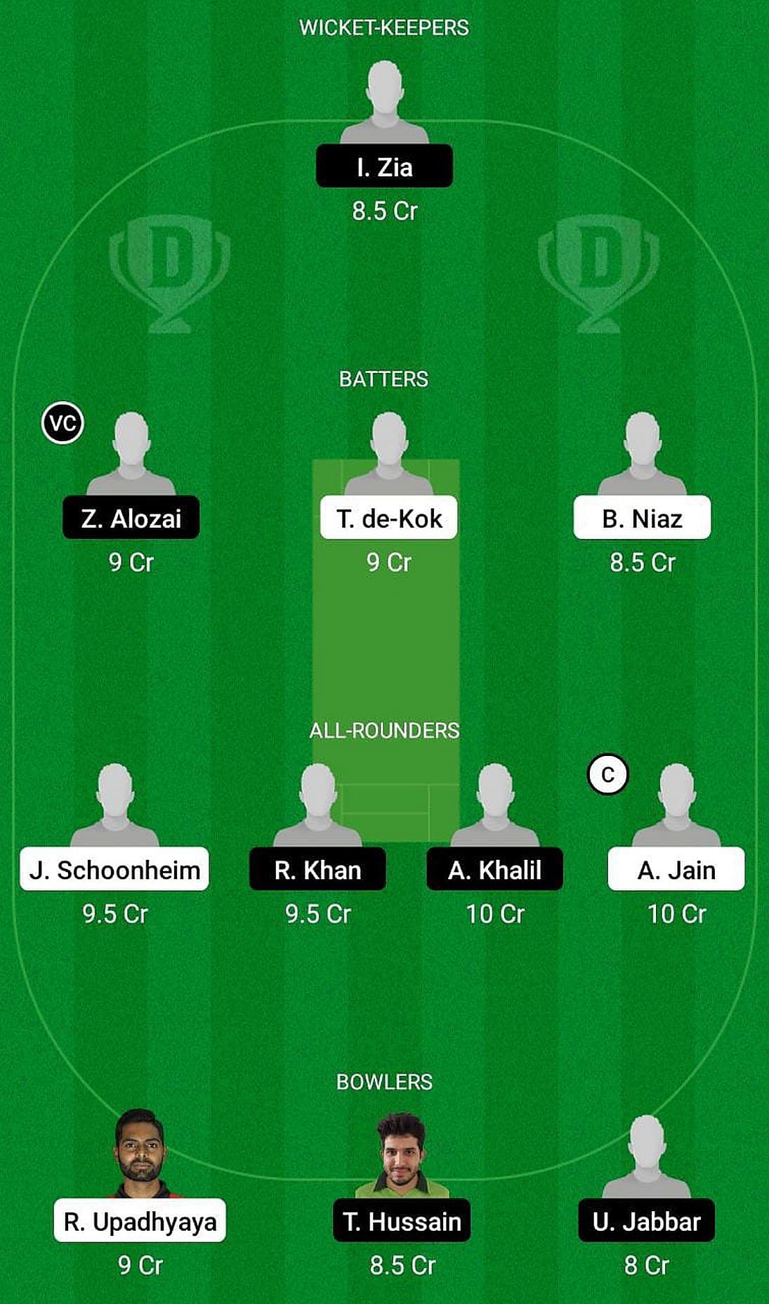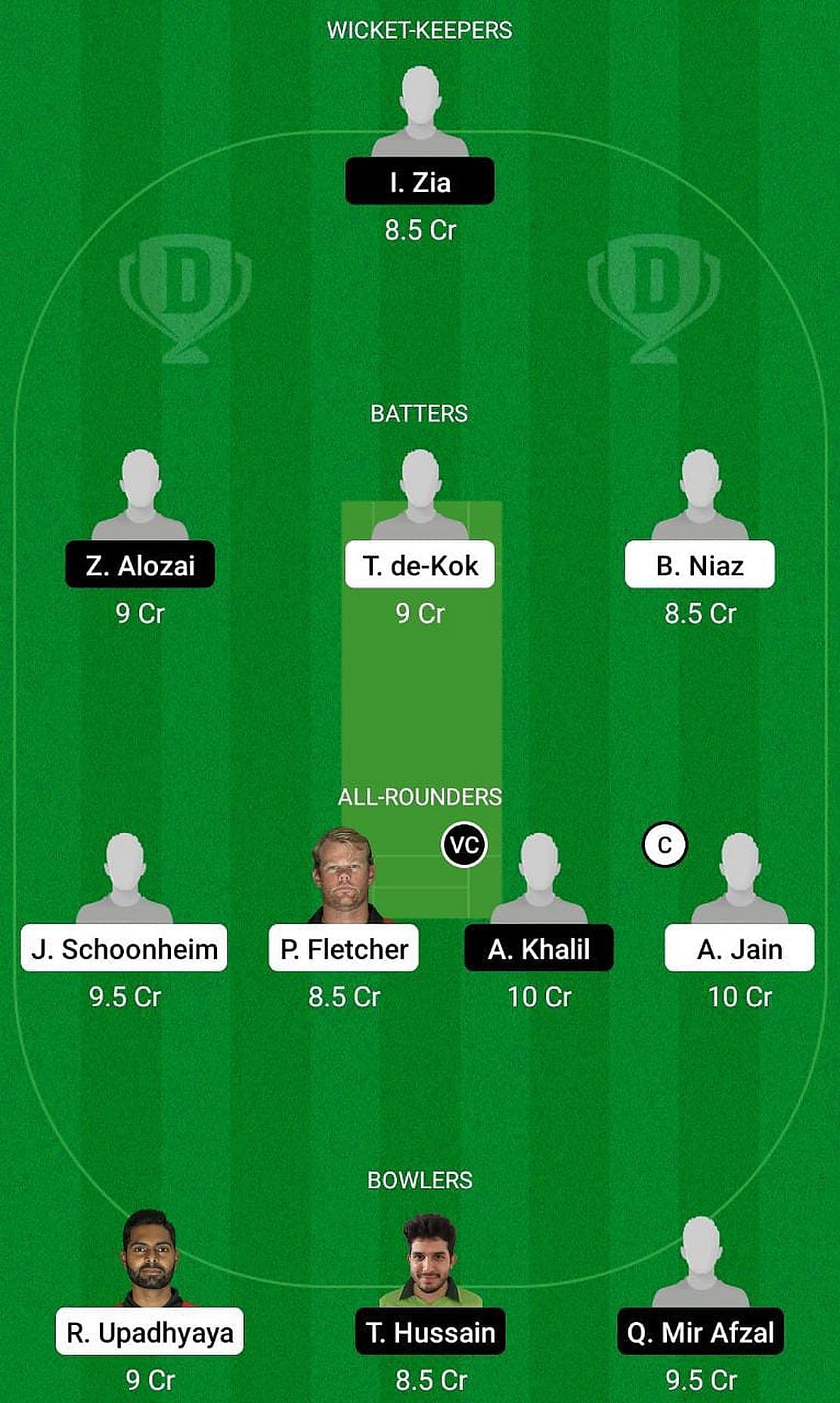 Fantasy Suggestion #1: Isamaeel Zia, Ziakhan Alozai, Tim de Kok, Burhan Niaz, Jelte Schoonheim, Pierce Fletcher, Azam Khalil, Arnav Jain, Ramie Upadhyaya, Taj Hussain, Qudratullah Mir Afzal.