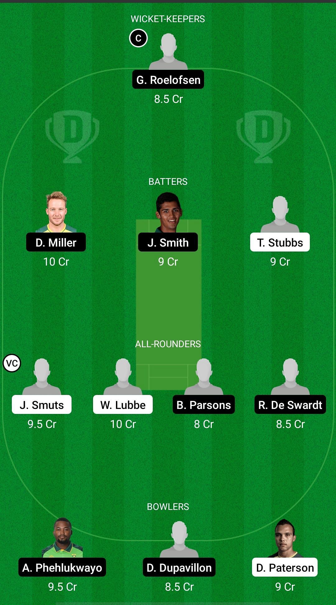 Fantasy Suggestion #2: Grant Roelofsen, Tristan Stubbs, Jason Smith, David Miller, Wihan Lubbe, Bryce Parsons, Ruan de Swardt, JJ Smuts, Dane Paterson, Daryn Dupavillon, Andile Phehlukwayo.