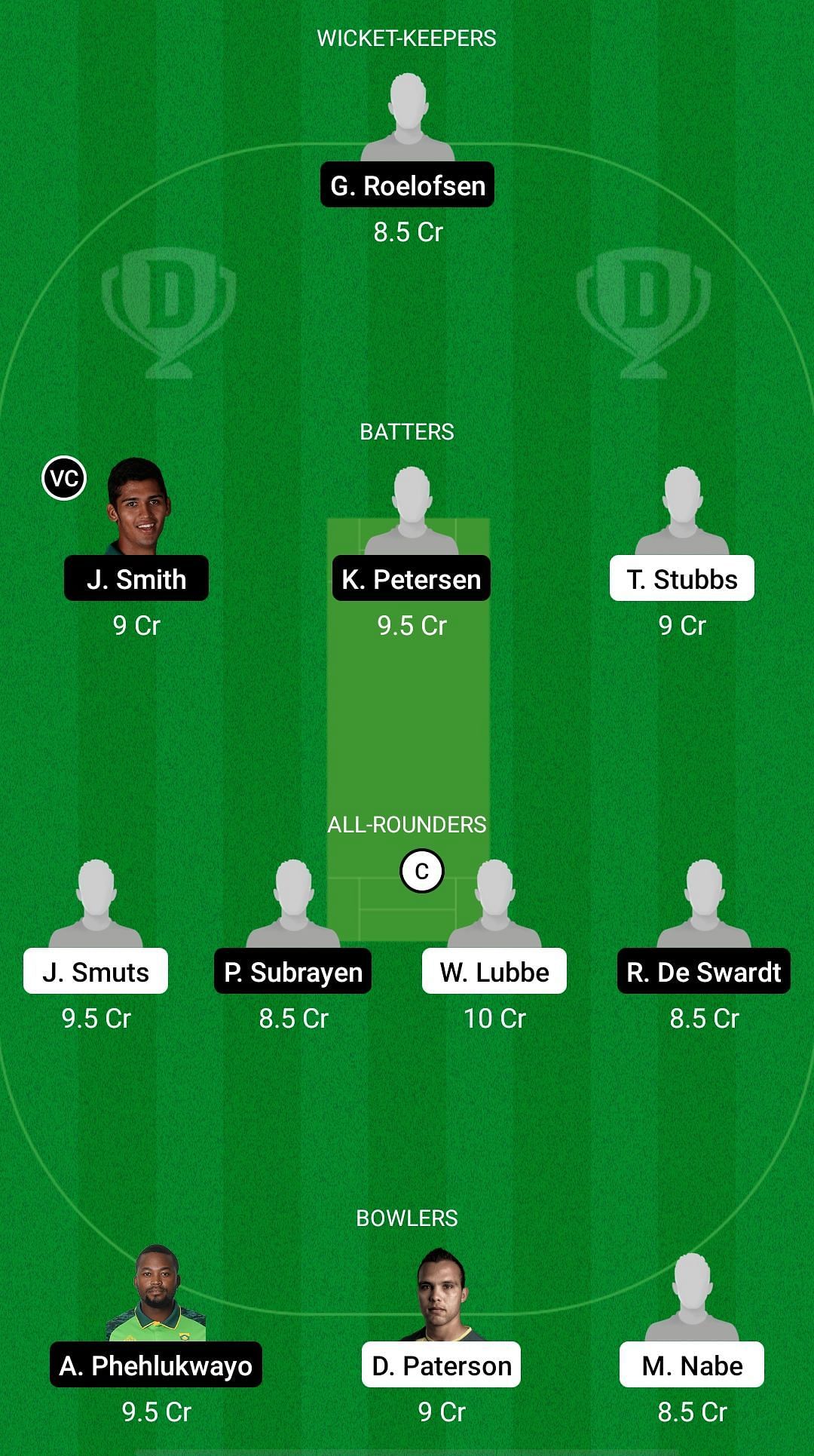 Prenelan Subrayen (C), Keegan Petersen, Grant Roelofsen (WK), Andile Phehlukwayo, David Miller, Khaya Zondo, Jason Smith, Bryce Parsons, Ruan de Swardt, Daryn Dupavillon, Odirile Modimokoane.
