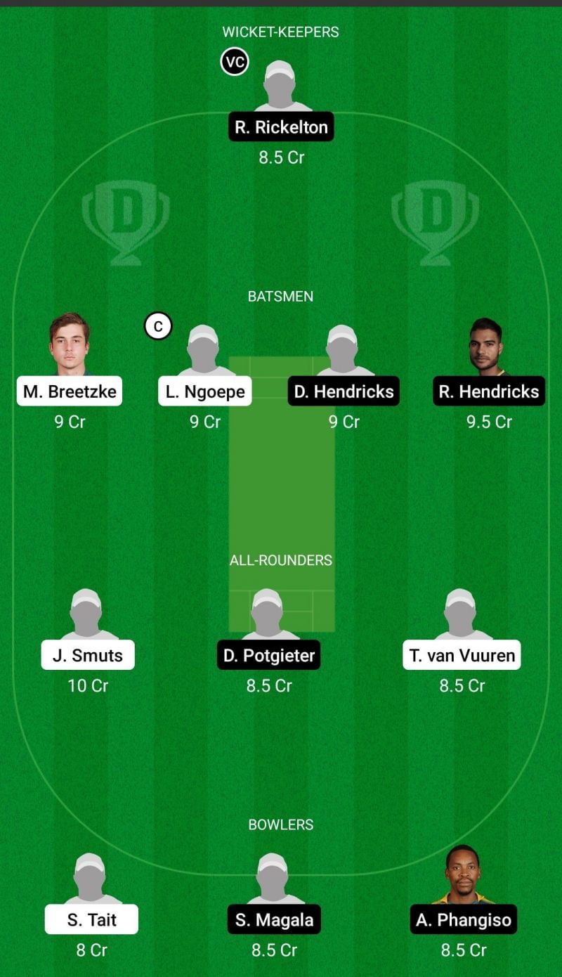 Fantasy Suggestion #1: Ryan Rickelton, Matthew Breetzke, Lesiba Ngoepe, Dominic Hendricks, Reeza Hendricks, Jon Jon Smuts, Delano Potgieter, Tiaan van Vuuren, Stefan Tait, Sisanda Magala, Aaron Phangiso