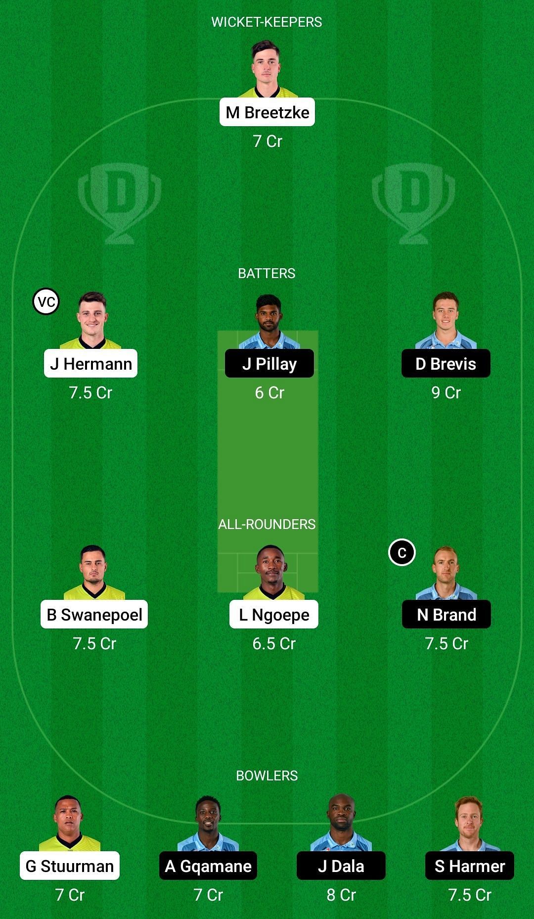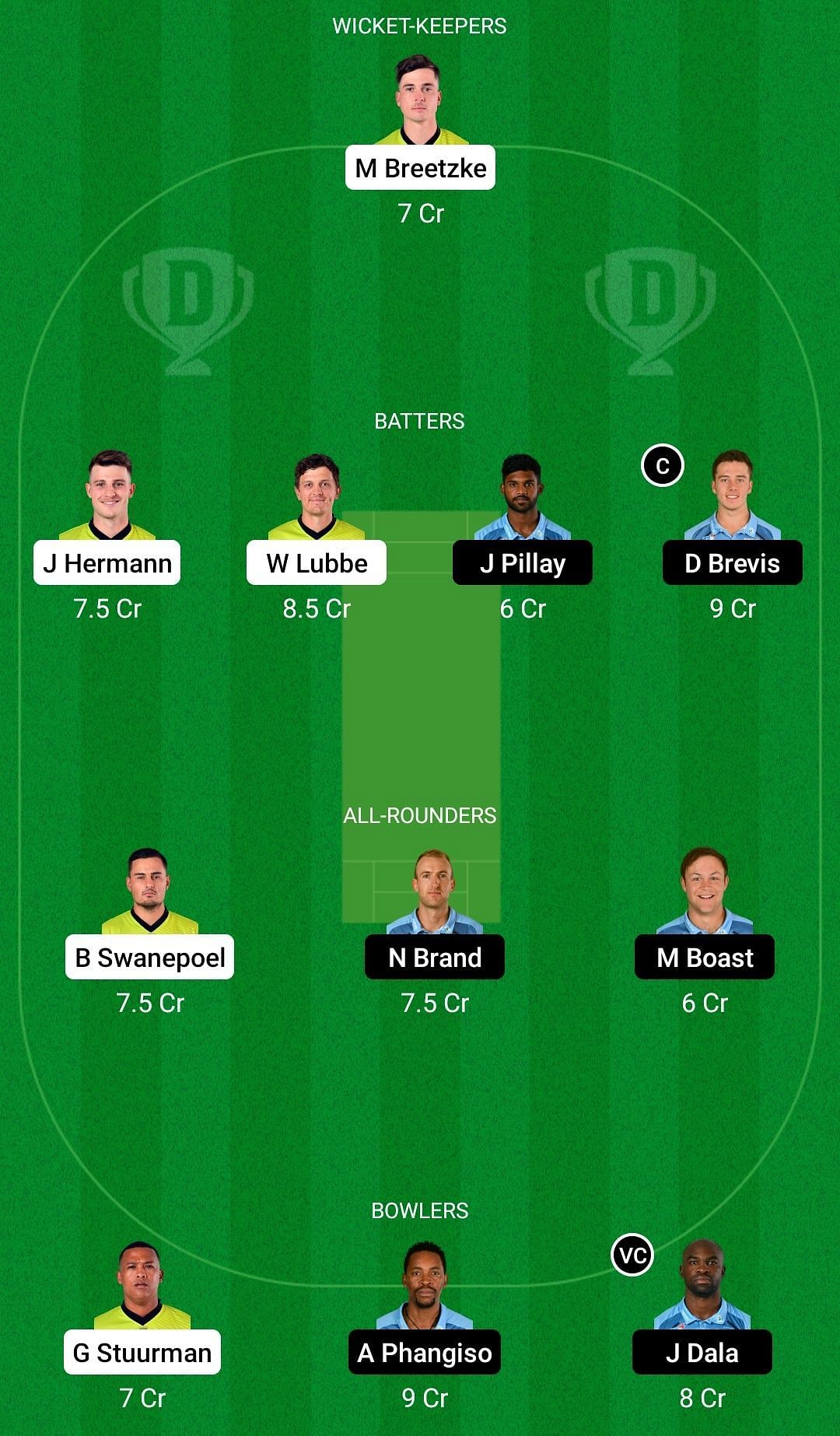 Warriors Probable Playing XI: Matthew Breetzke, Wihan Lubbe (c), Lesiba Ngoepe, Diego Rosier, Sinethemba Qeshile (wk), Beyers Swanepoel, Tiaan van Vuuren, Glenton Stuurman, Kgaudisa Molefe, Ziyaad Abrahams, Jordan Hermann, Rudi Second