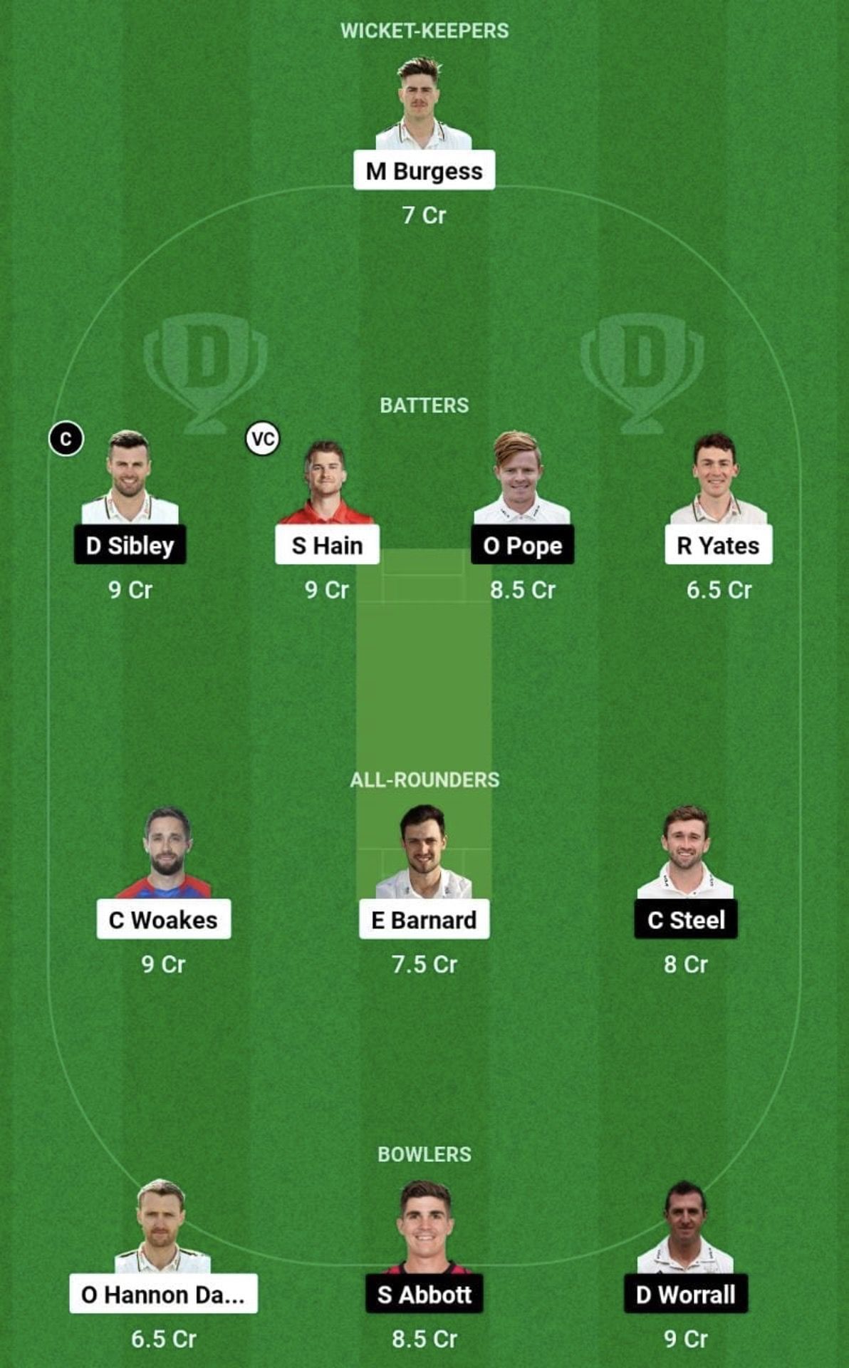 Batters: Dom Sibley (c), Sam Hain (vc), Ollie Pope, Rob Yates