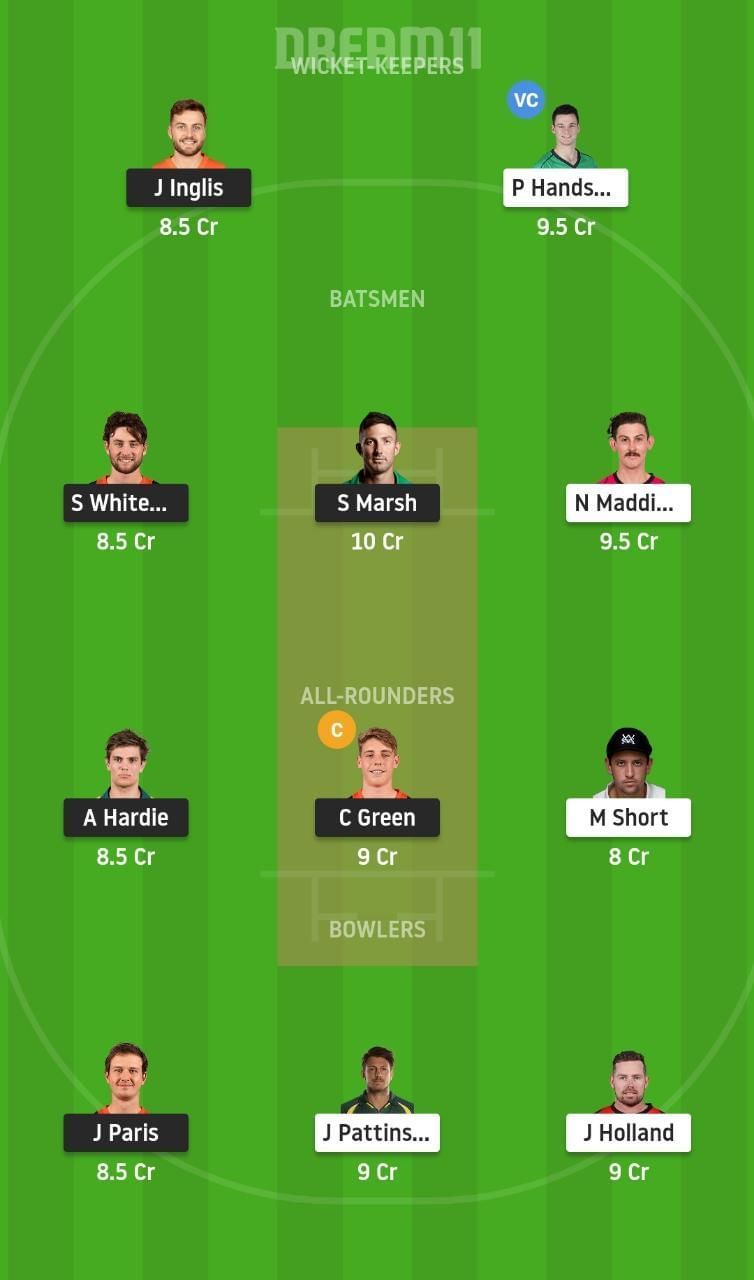 Captain: Cameron Green. Vice-captain: Peter Handscomb