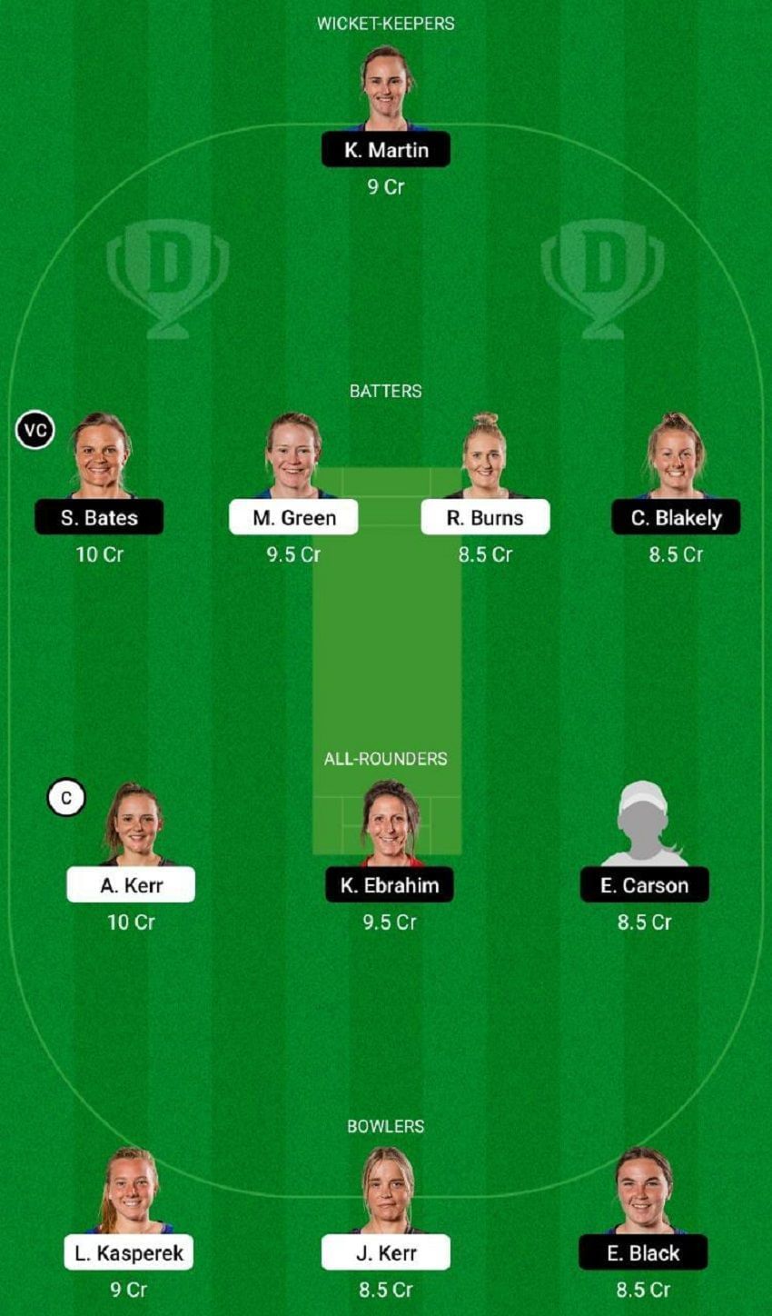 Suzie Bates (c), Polly Inglis, Katey Martin (wk), Kate Ebrahim, Caitlin Blakely, Eden Carson, Emma Black, Molly Loe, Bella James, Sophie Oldershaw and Olivia Gain