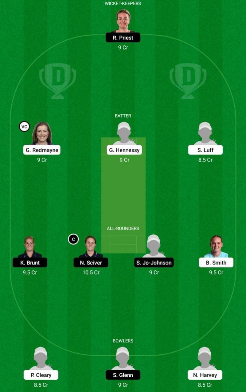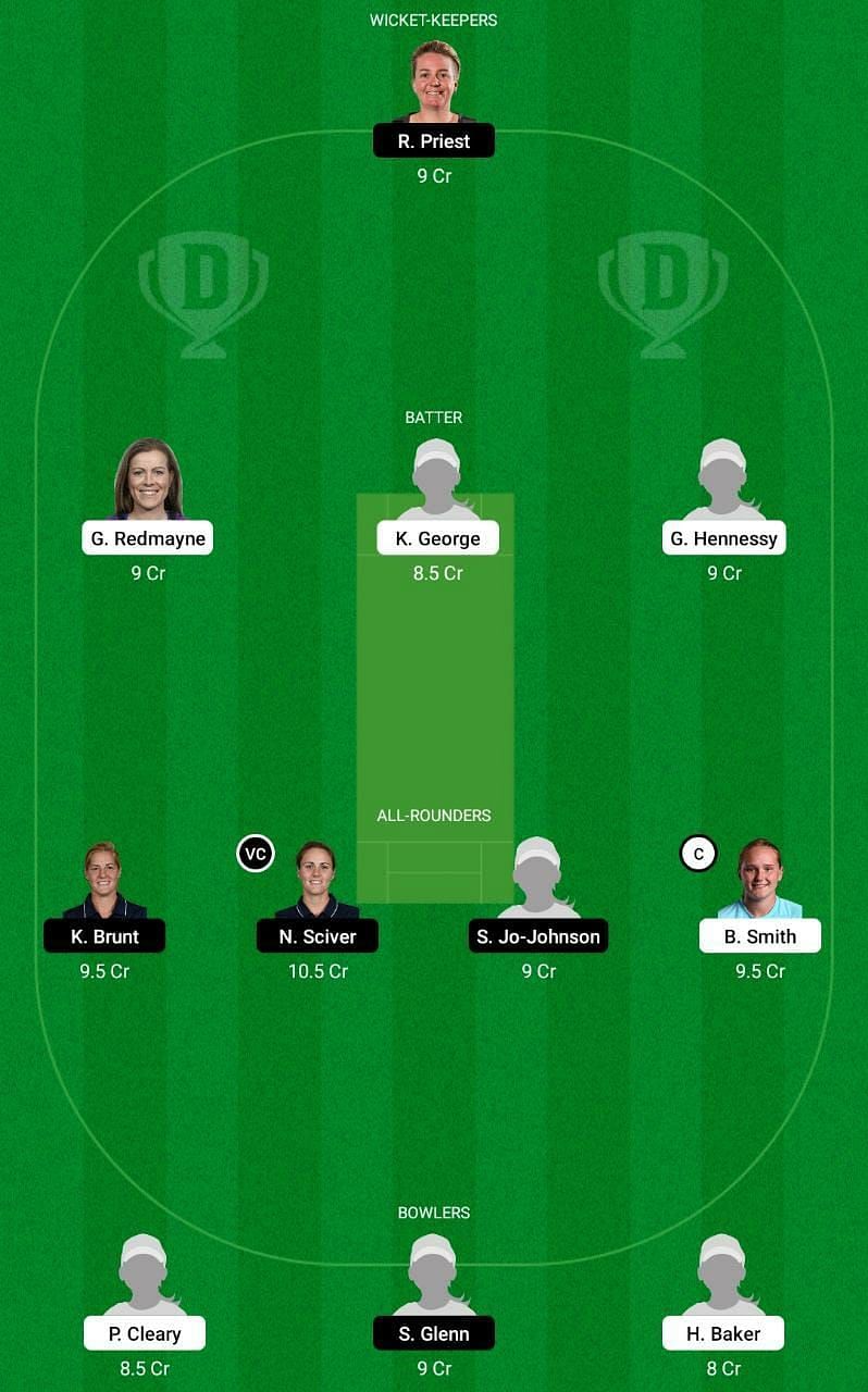 Fantasy Suggestion #1: Rachel Priest, Georgia Redmayne, Georgia Hennessy, Sophie Luff, Katherine Brunt, Nat Sciver, Sammy Jo-Johnson, Bryony Smith, Piepa Cleary, Sarah Glenn and Nicole Harvey