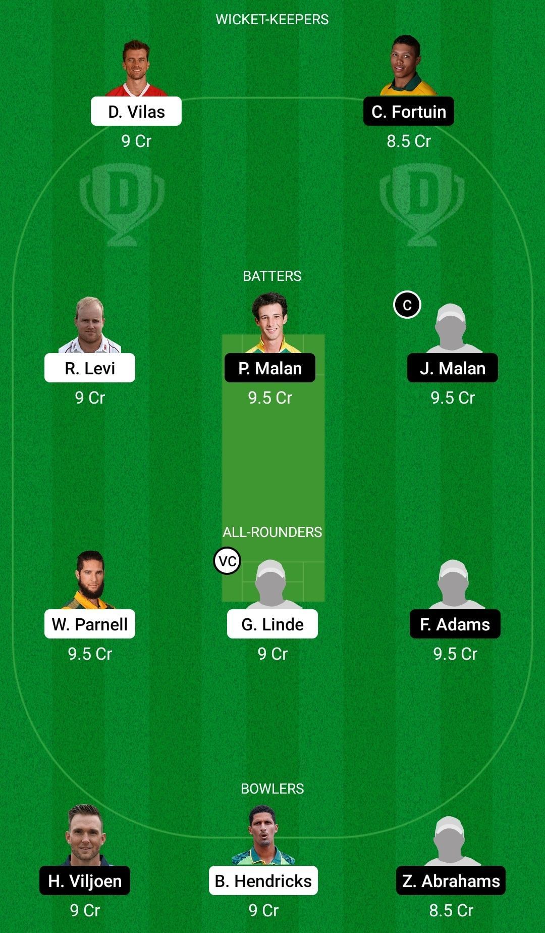 Fantasy Suggestion #1: Dane Vilas, Clyde Fortuin, Richard Levi, Pieter Malan, Janneman Malan, Wayne Parnell, George Linde, Ferisco Adams, Hardus Viljoen, Beuran Hendricks, Ziyaad Abrahams