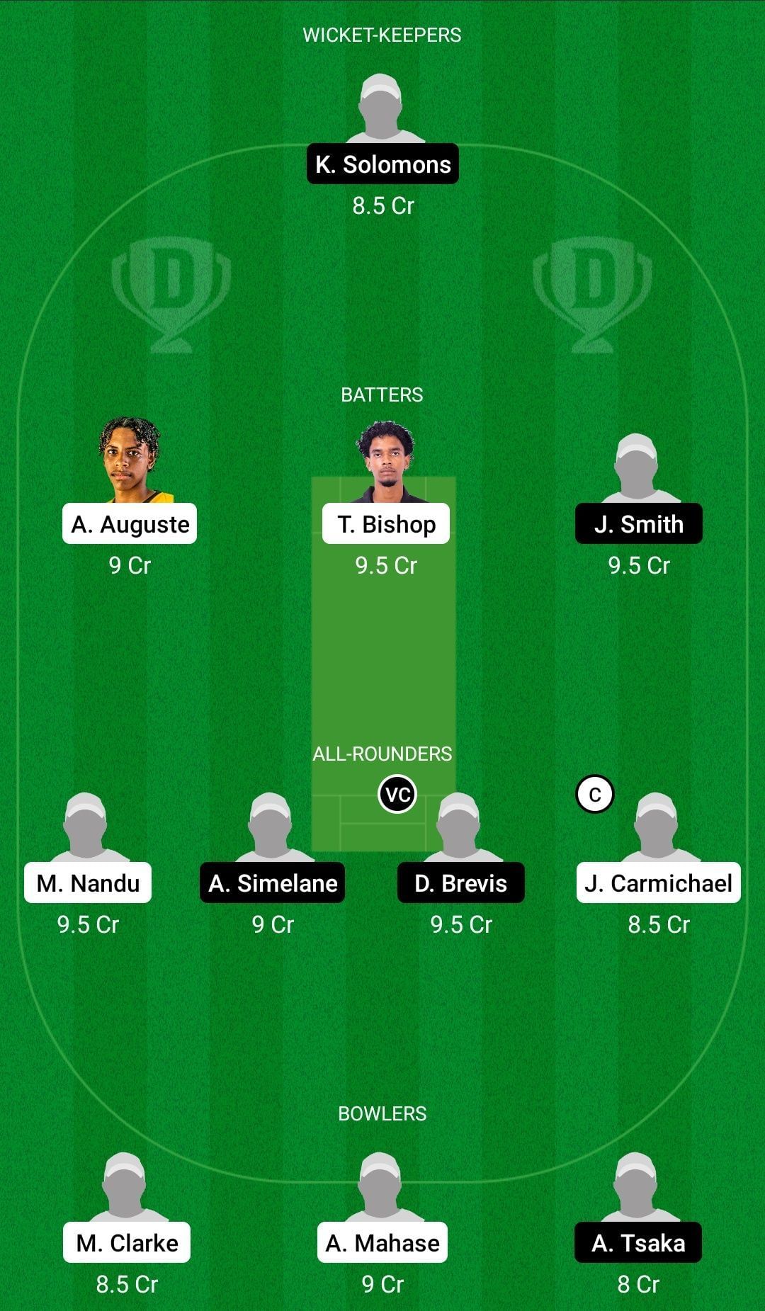 Fantasy Suggestion #1: Kaden Solomons, Ackeem Auguste, Teddy Bishop, Jade Smith, Matthew Nandu, Andile Simelane, Dewald Brevis, Jaden Carmichael, McKenny Clarke, Anderson Mahase, Asakhe Tshaka