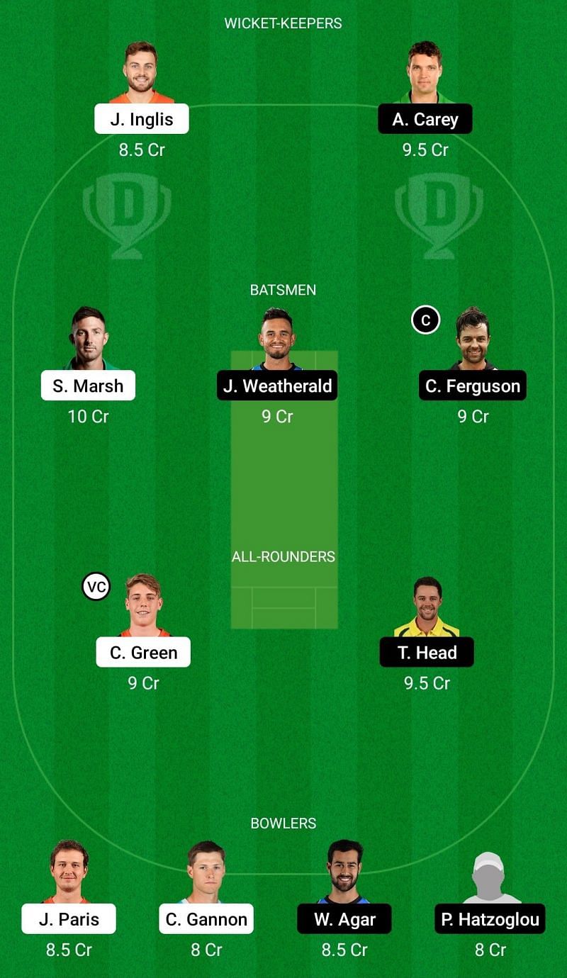 Fantasy Suggestion #1: Josh Inglis, Alex Carey, Shaun Marsh, Jake Weatherald, Callum Ferguson, Cameron Green, Travis Head, Joel Paris, Cameron Gannon, Wes Agar, Peter Hatzoglou.