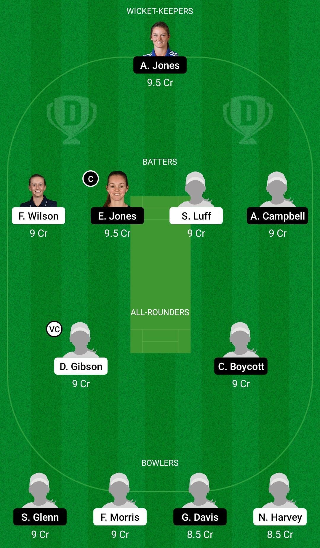 Captain: Eve Jones Vice-captain: Danielle Gibson