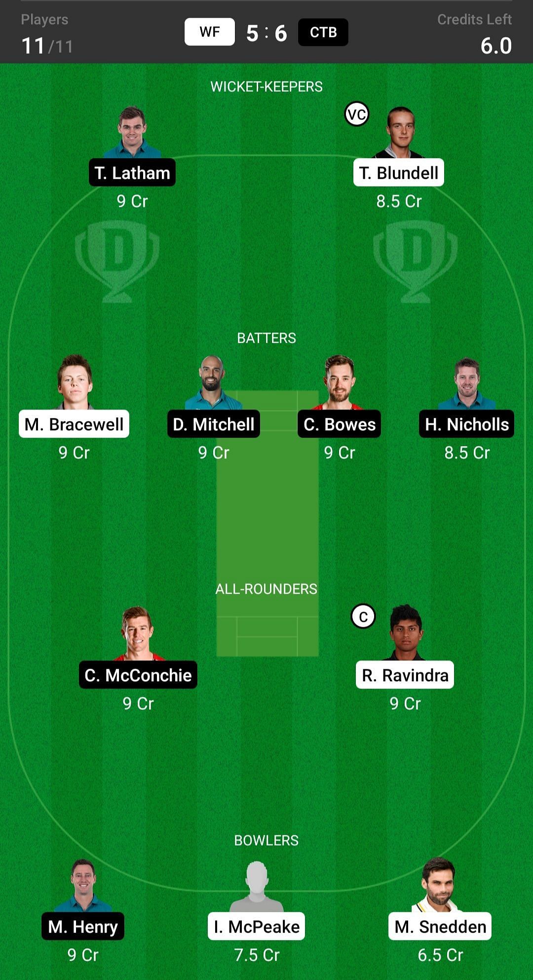 C Bowes and D Mitchell are the two best batter picks for the Dream11 team. H Nicholls has played exceptionally well in the last few matches, so he is also a good pick for today's Dream11 team.