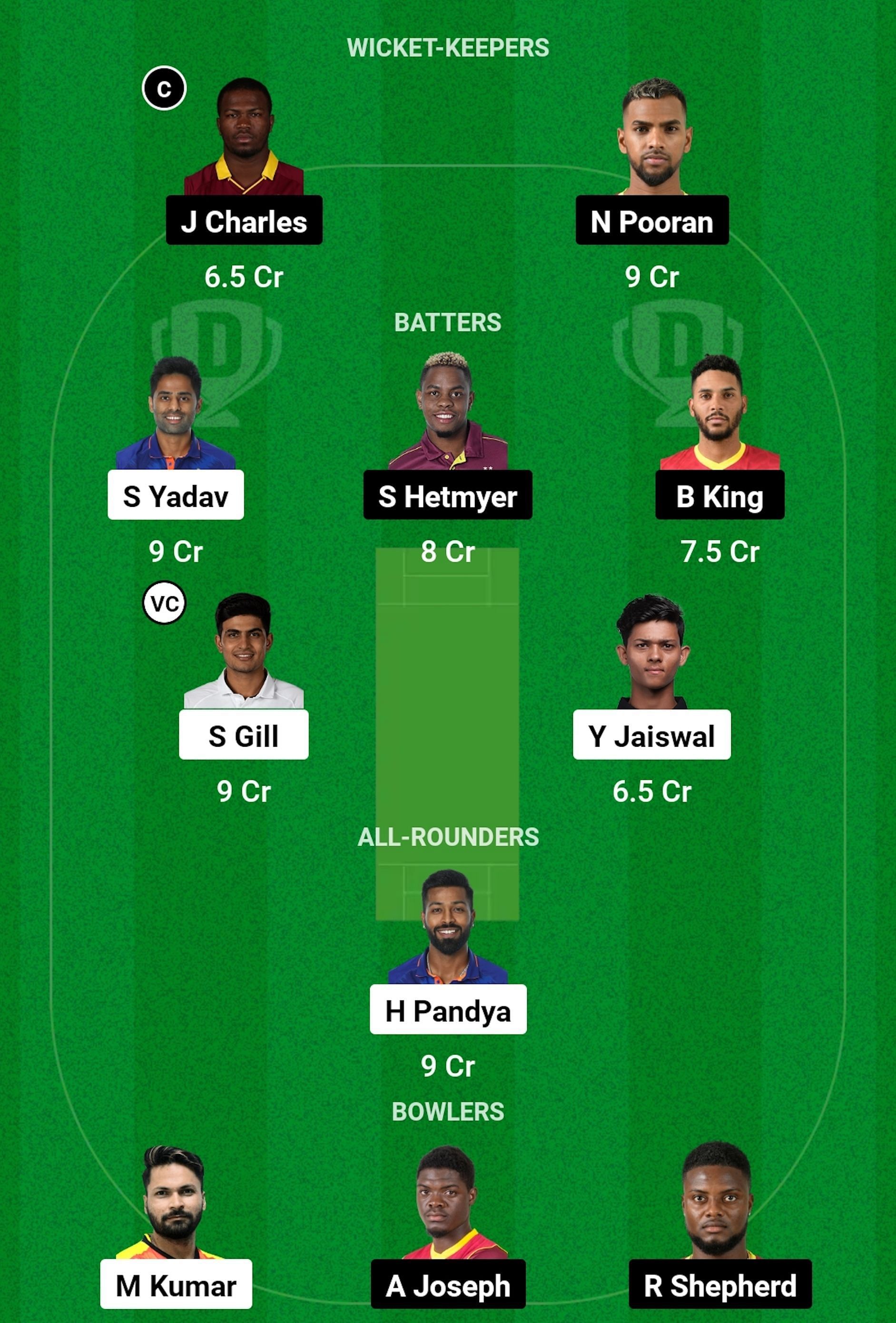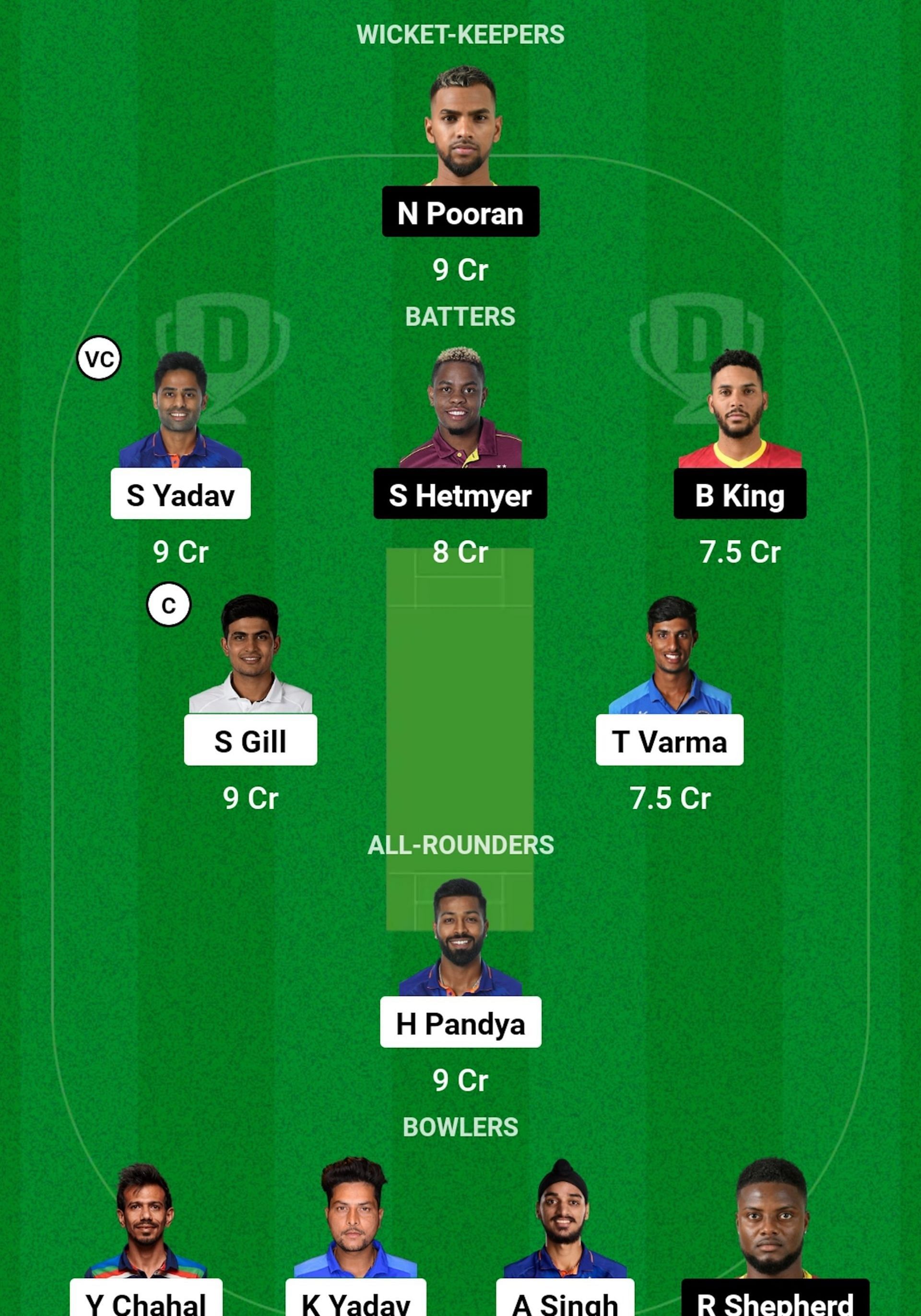 Batters: Suryakumar Yadav (vc), Shimron Hetmyer, Brandon King, Shubman Gill (c), Tilak Varma