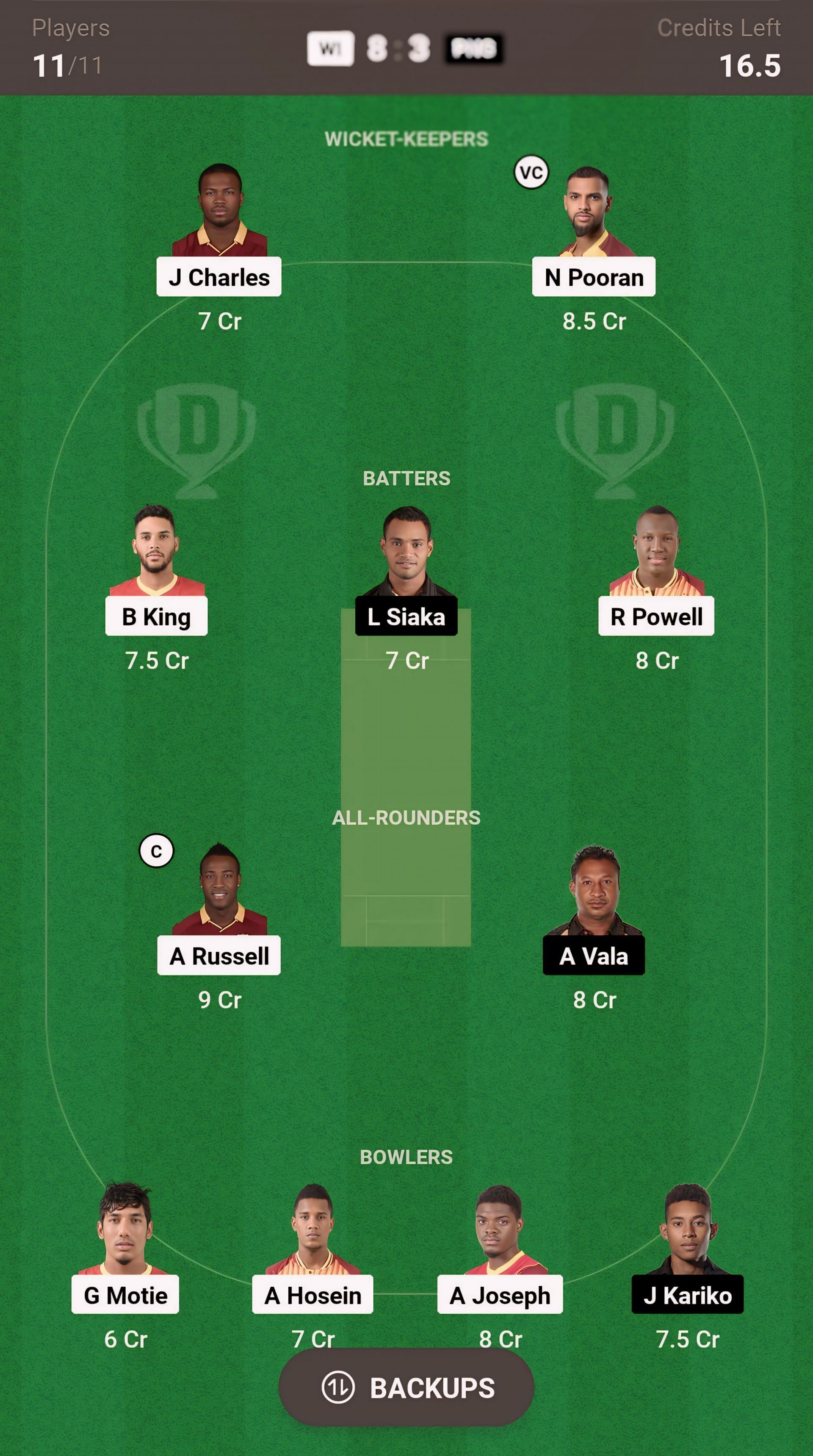Lega Siaka and Brandon King are the two best batters to picks for today's Dream11 team. Brandon King is in exceptional form smashing runs in almost every match. Rovman Powell is another good pick who smashed 52 runs in just 25 balls.
