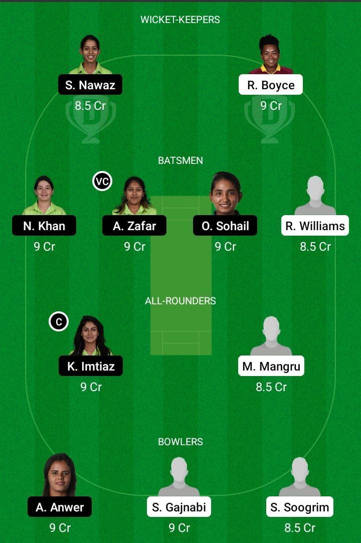 Captain: Kainat Imtiaz, Vice-Captain: Ayesha Zafar