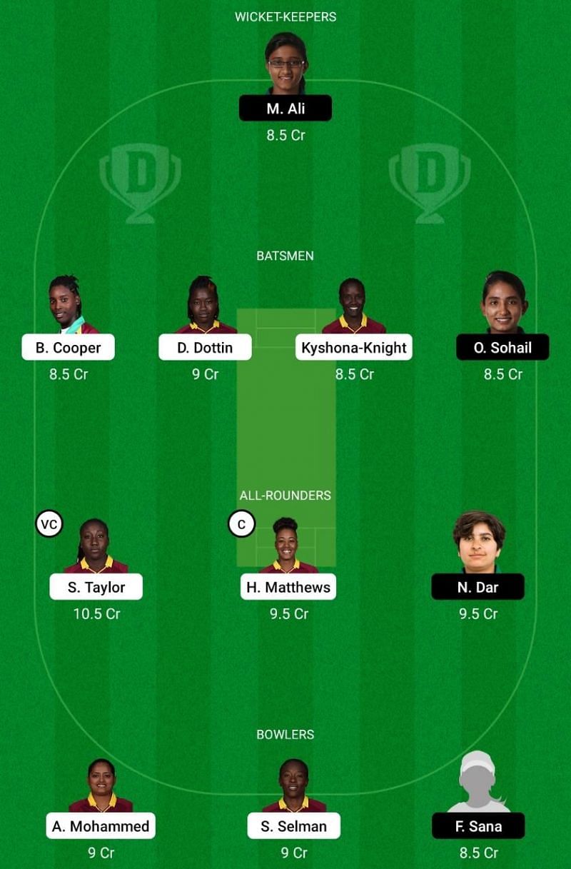 Fantasy Suggestion #1: Muneeba Ali, Britney Cooper, Deandra Dottin, Kyshona Knight, Omaima Sohail, Stafanie Taylor, Hayley Matthews, Nida Dar, Anisa Mohammed, Shakera Selman, Fatima Sana
