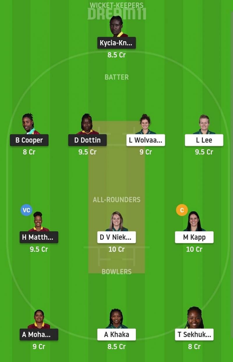 Fantasy Suggestion #1: Kycia Knight, Lizelle Lee, Laura Wolvaardt, Deandra Dottin, Britney Cooper, Marizanne Kapp, Dane Van Niekerk, Hayley Matthews, Tumi Sekhukhune, Ayabonga Khaka, Anisa Mohammed