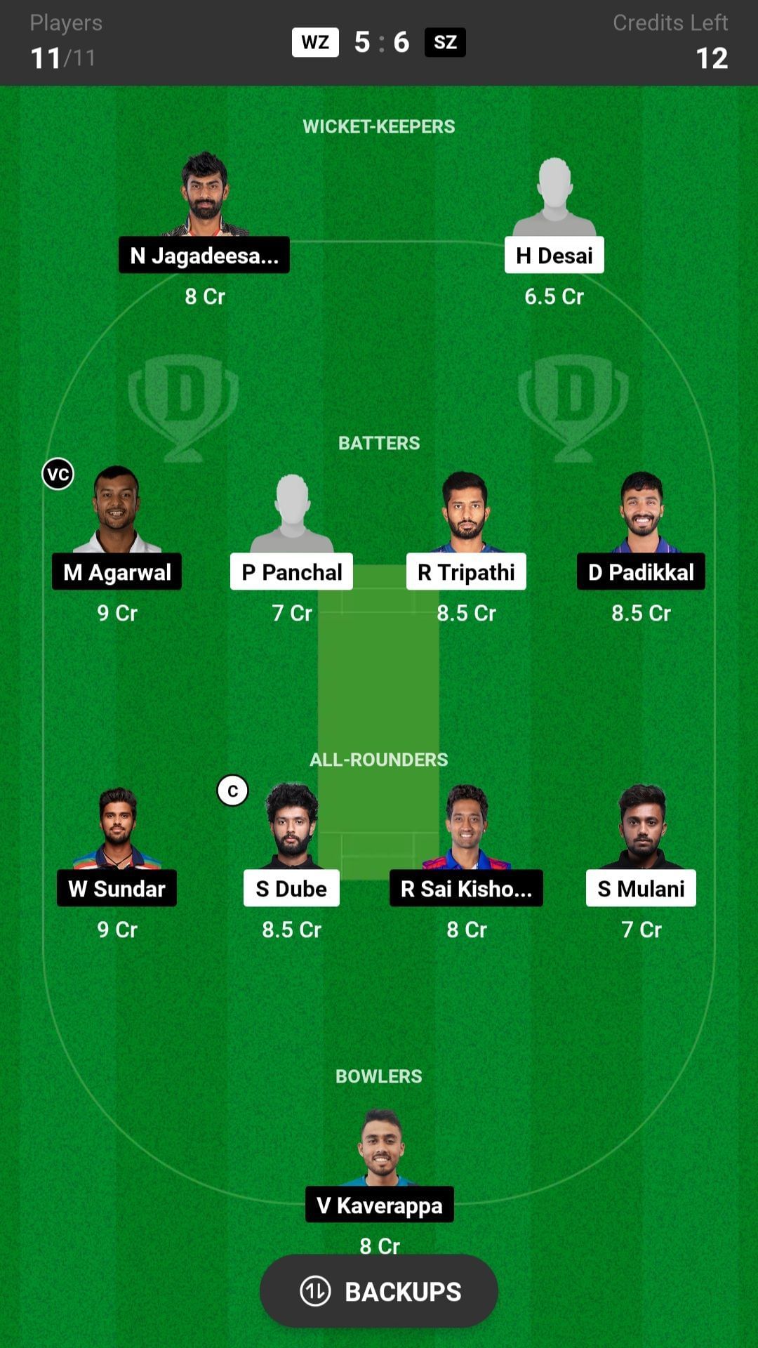 W Sundar and S Dube are the best all-rounder picks for the Dream11 team as they are batting in the top order and also completing their quota of overs. R Sai Kishore is another good all-rounder pick for today's Dream11 team.