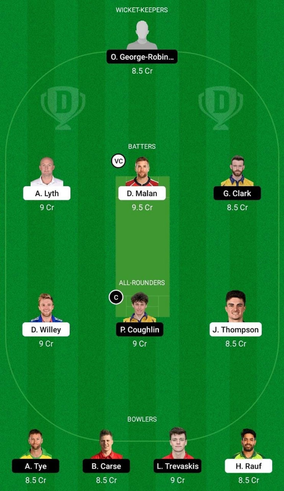 Fantasy Suggestion #2: Oliver George-Robinson, Dawid Malan, Graham Clark, Michael Jones, Paul Coughlin, Jordan Thompson, Shadab Khan, Liam Trevaskis, Adil Rashid, Haris Rauf, Andrew Tye