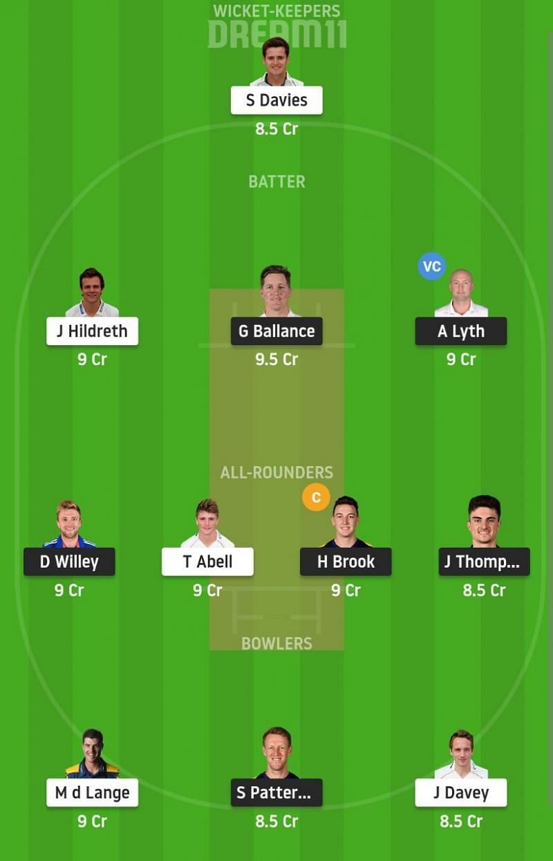 Fantasy Suggestion #1: Steve Davies, Adam Lyth, James Hildreth, Gary Balance, Harry Brook, Jordan Thompson, Tom Abell, David Willey, Josh Davey, Steven Patterson, Merchant de Lange