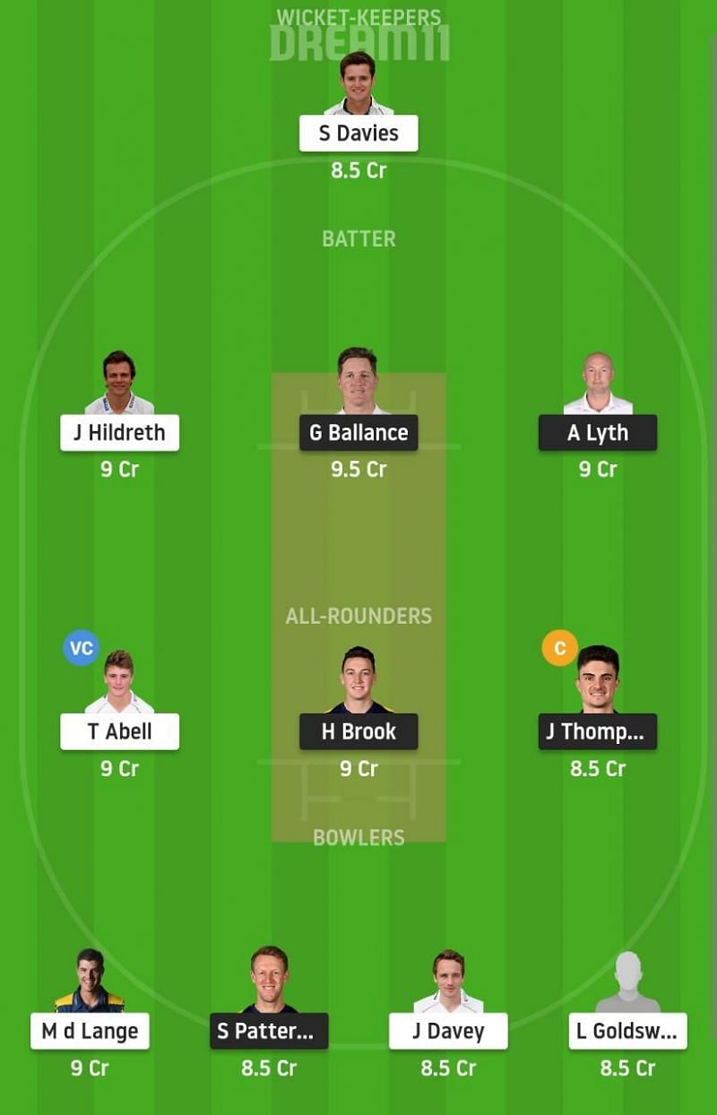 Fantasy Suggestion #2: Steve Davies, Adam Lyth, James Hildreth, Gary Balance, Harry Brook, Jordan Thompson, Tom Abell, Lewis Goldsworthy, Josh Davey, Steven Patterson, Merchant de Lange