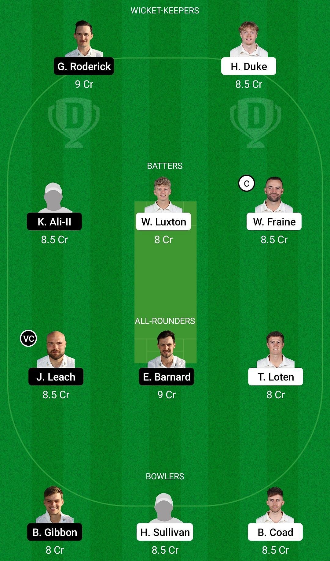 Fantasy Suggestion #1: Harry Duke, Kashif Ali, Taylor Cornall, William Luxton, Will Fraine, Joe Leach, Ed Barnard, Tom Loten, Ben Gibbon, Dominic Bess, Ben Coad.