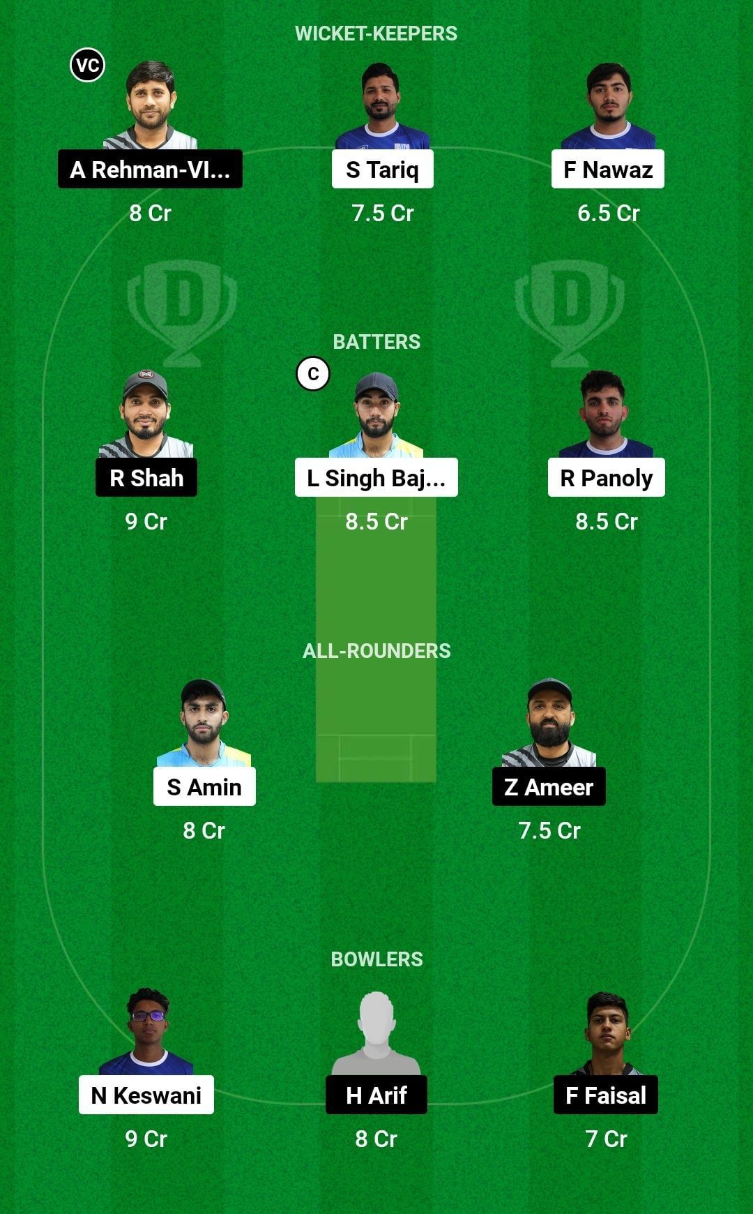Z Games Strikers Probable Playing XI: Mohammad Umer-Nadim, Shahrukh Amin, Lovepreet Singh, Sardar Bahzad, Safeer Tariq, Fahad Nawaz, Nadir Hussain, Ronak Panoly, Faisal Altaf, Nilansh Keswani, Aryaman Sharma
