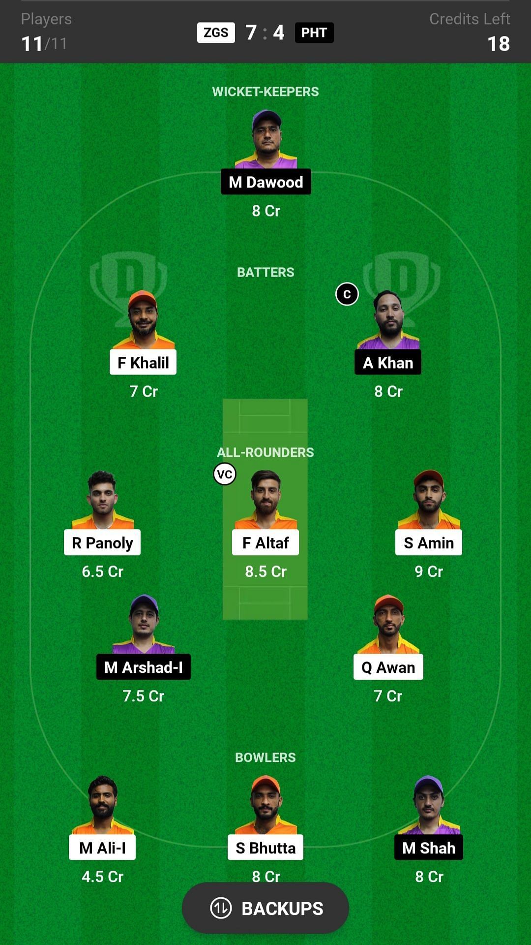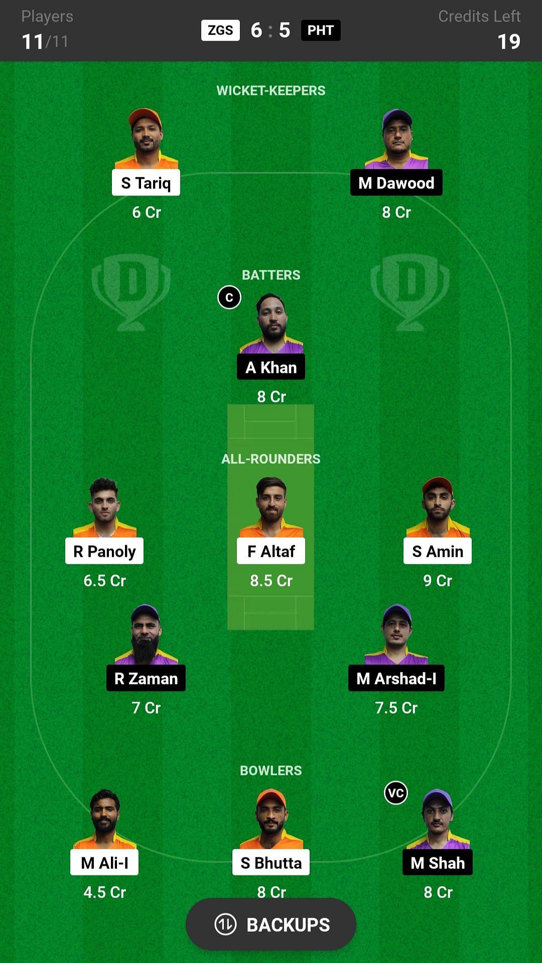S Amin and F Altaf are the best all-rounder picks for the Dream11 team as they are batting in the top order and also completing their quota of overs. M Arshad is another good pick for today's Dream11 match.