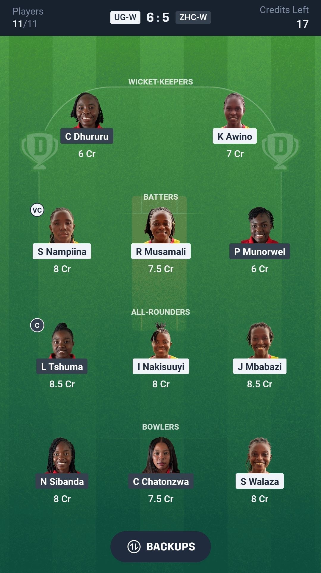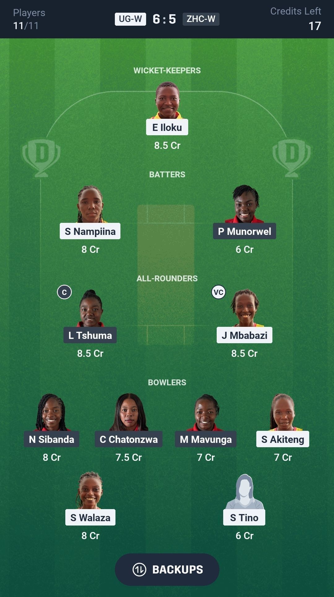 Bowlers: S Walaza, N Sibanda, C Chatonzwa, S Akiteng, S Tino, M Mavunga