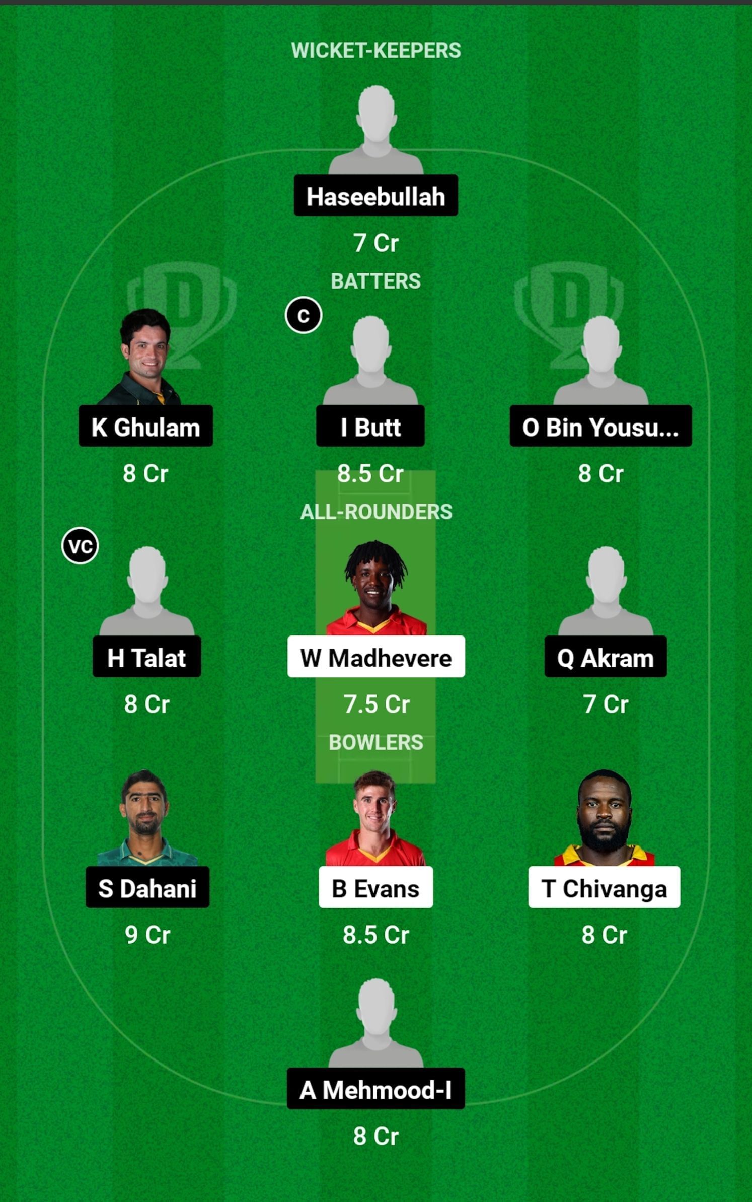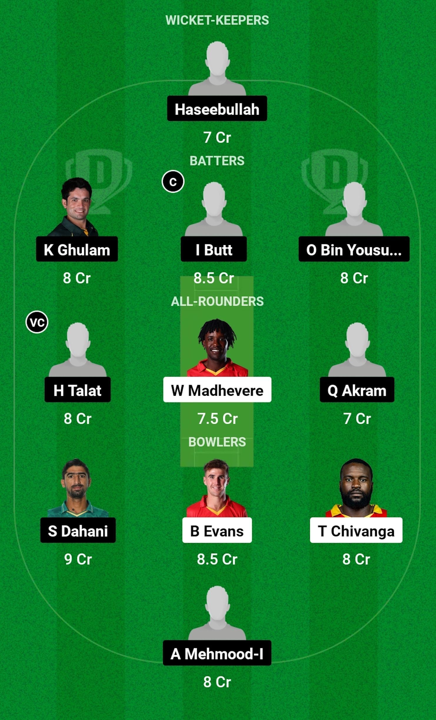 H Talat can be a very effective all-rounder making contributions for the team with both the bat and the ball. Talat will be a pretty safe choice as the captain or vice-captain for the match.