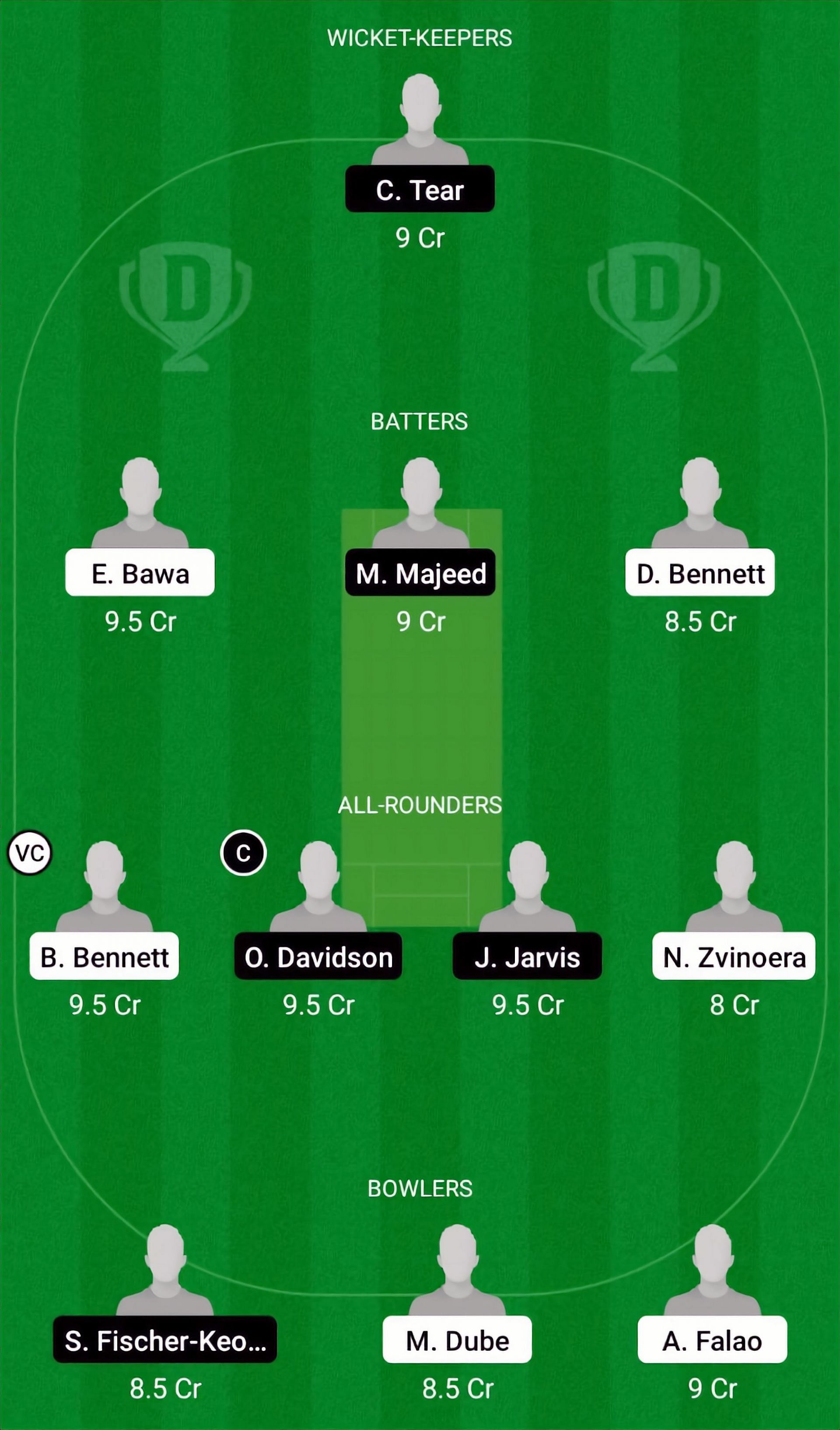 Charlie Tear: Tear generally opens the inning for his side and is expected to play a key role in this must-win game. He could prove to be valuable behind the stumps as well.