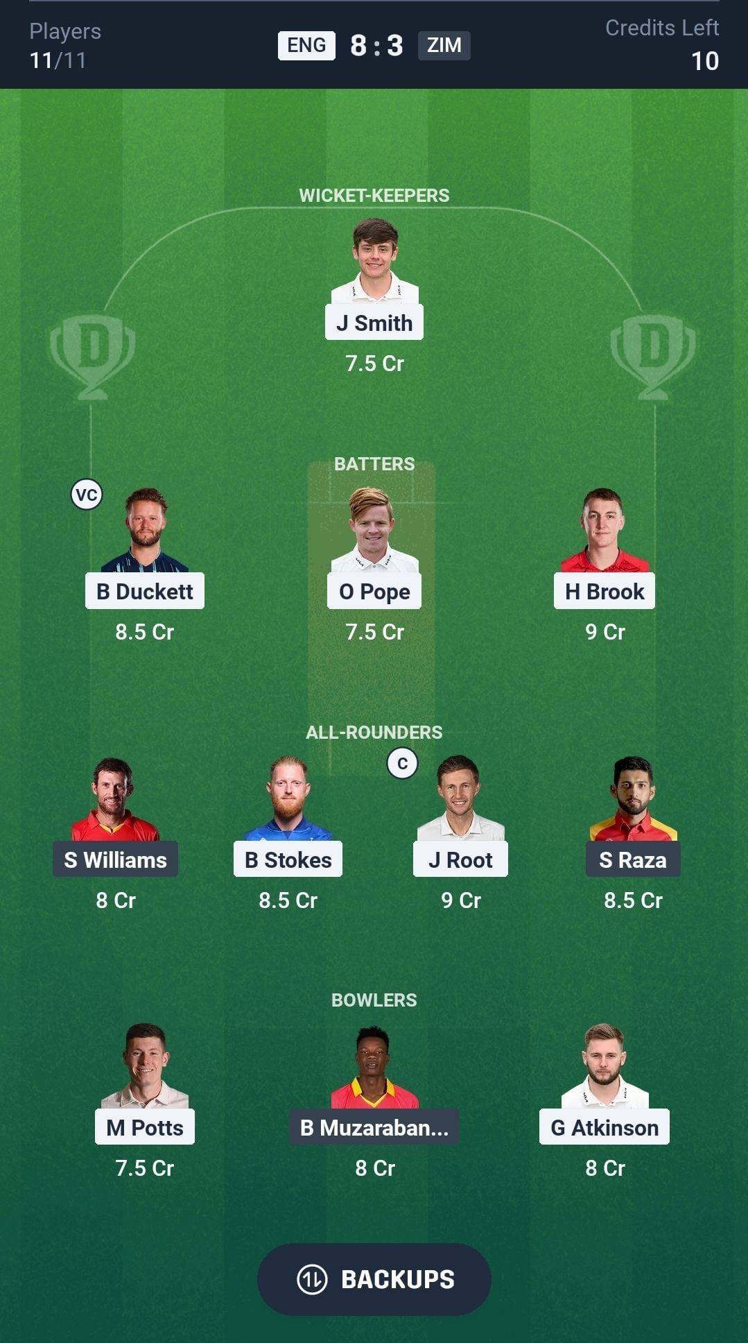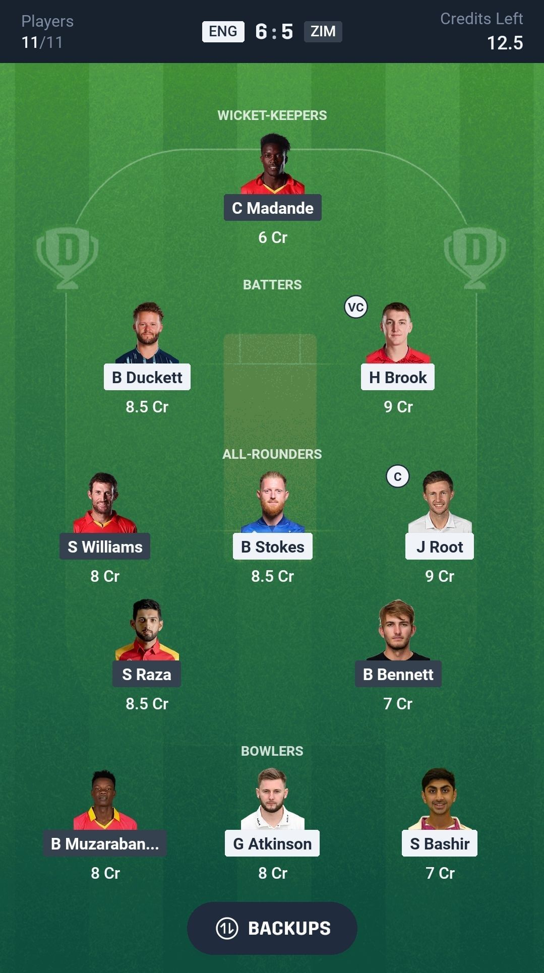 Zimbabwe vs England Dream11 Prediction Today, Grand League
