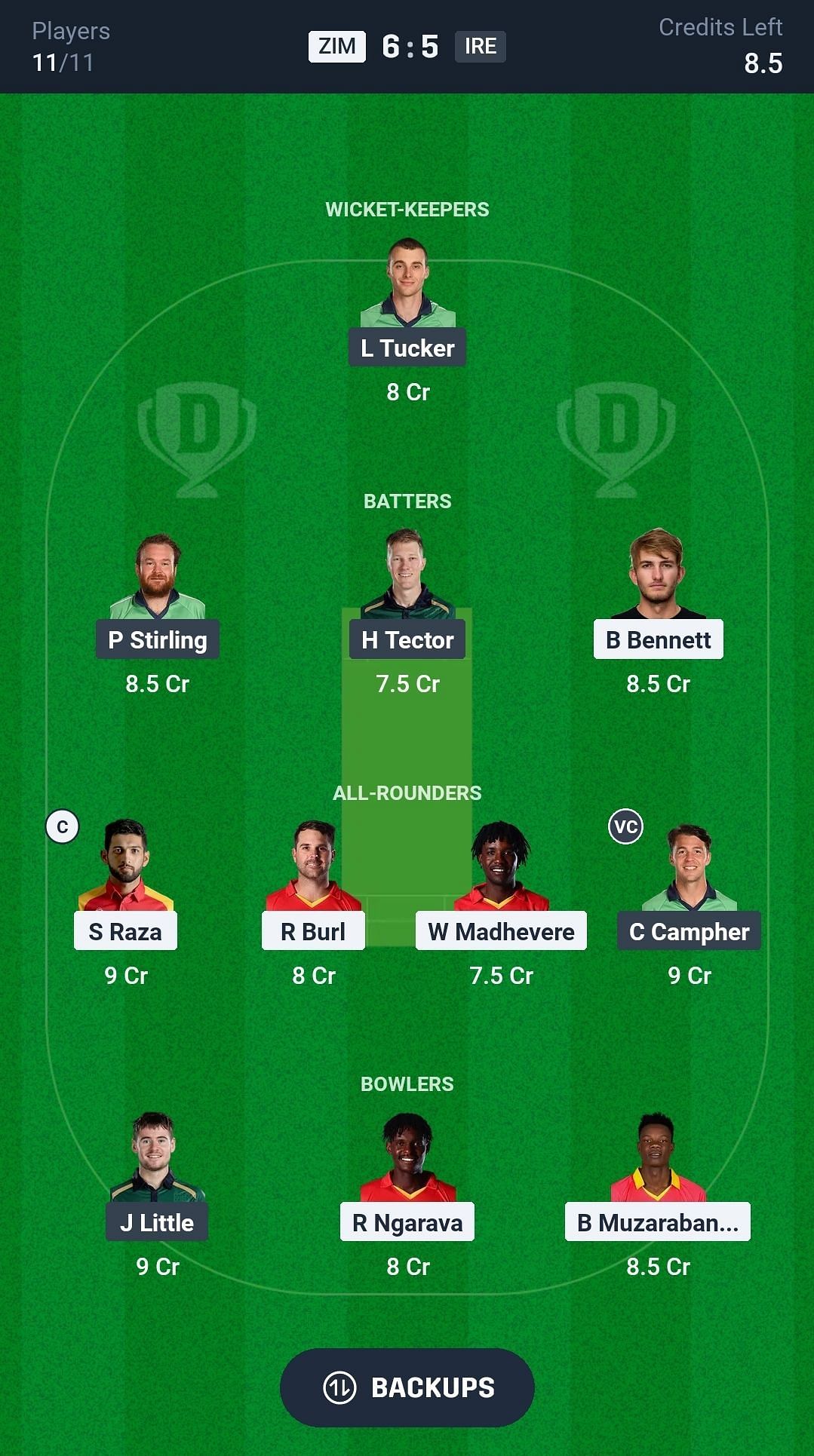 Zimbabwe vs Ireland Dream11 Prediction Today, Grand League